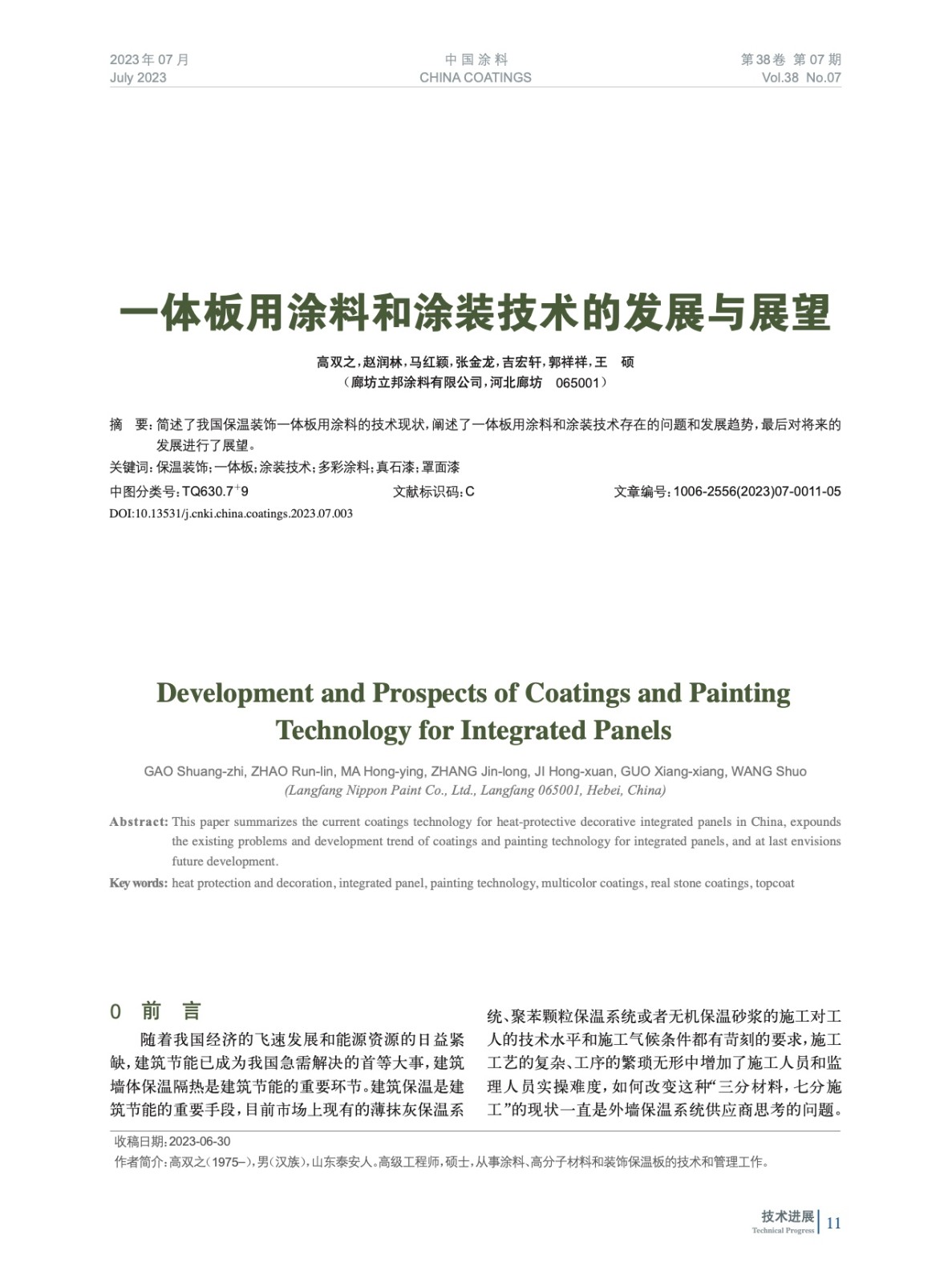 一體板用涂料和涂裝技術(shù)的發(fā)展與展望