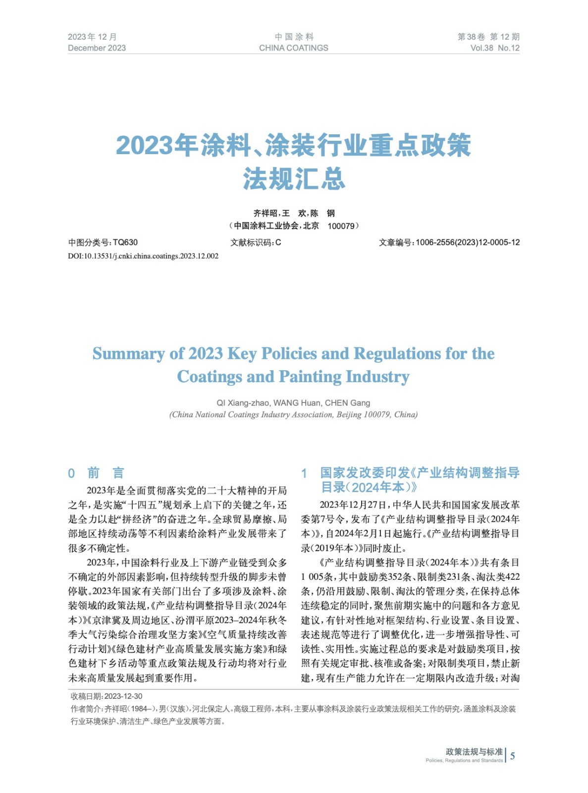 2023年涂料、涂裝行業(yè)重點(diǎn)政策法規(guī)匯總