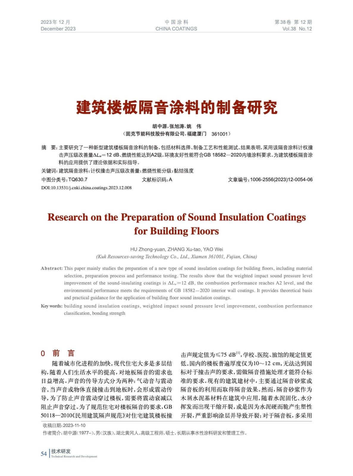 本文系作者@胡中源,張旭濤,姚 偉 授權中國涂料網發表,并經中國涂料網編輯,未經允許不得轉載,如需轉載請聯系chinacoatingnet@vip.163.com