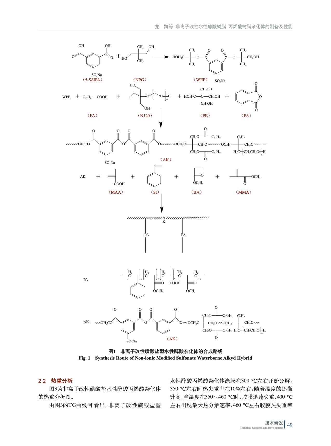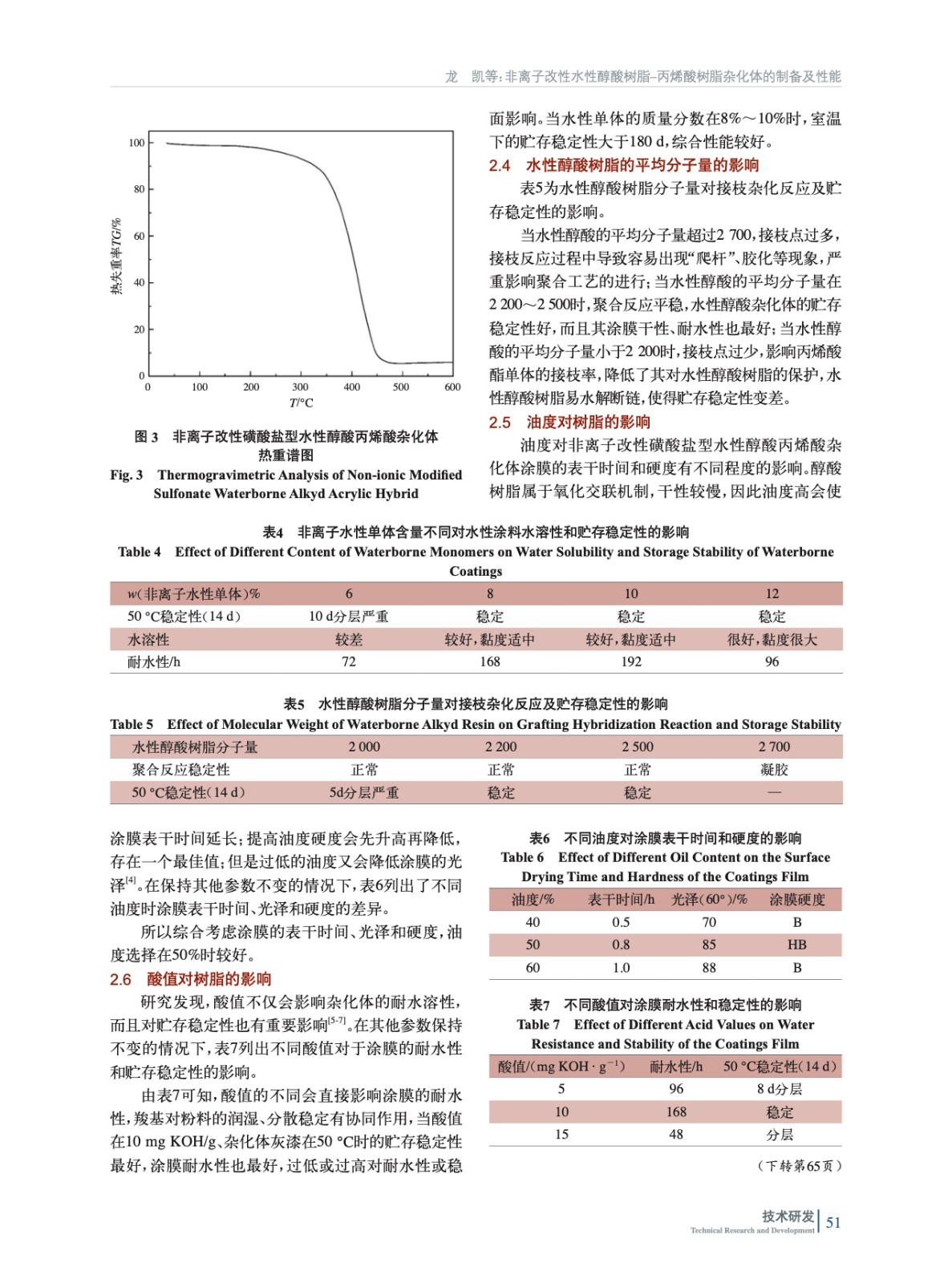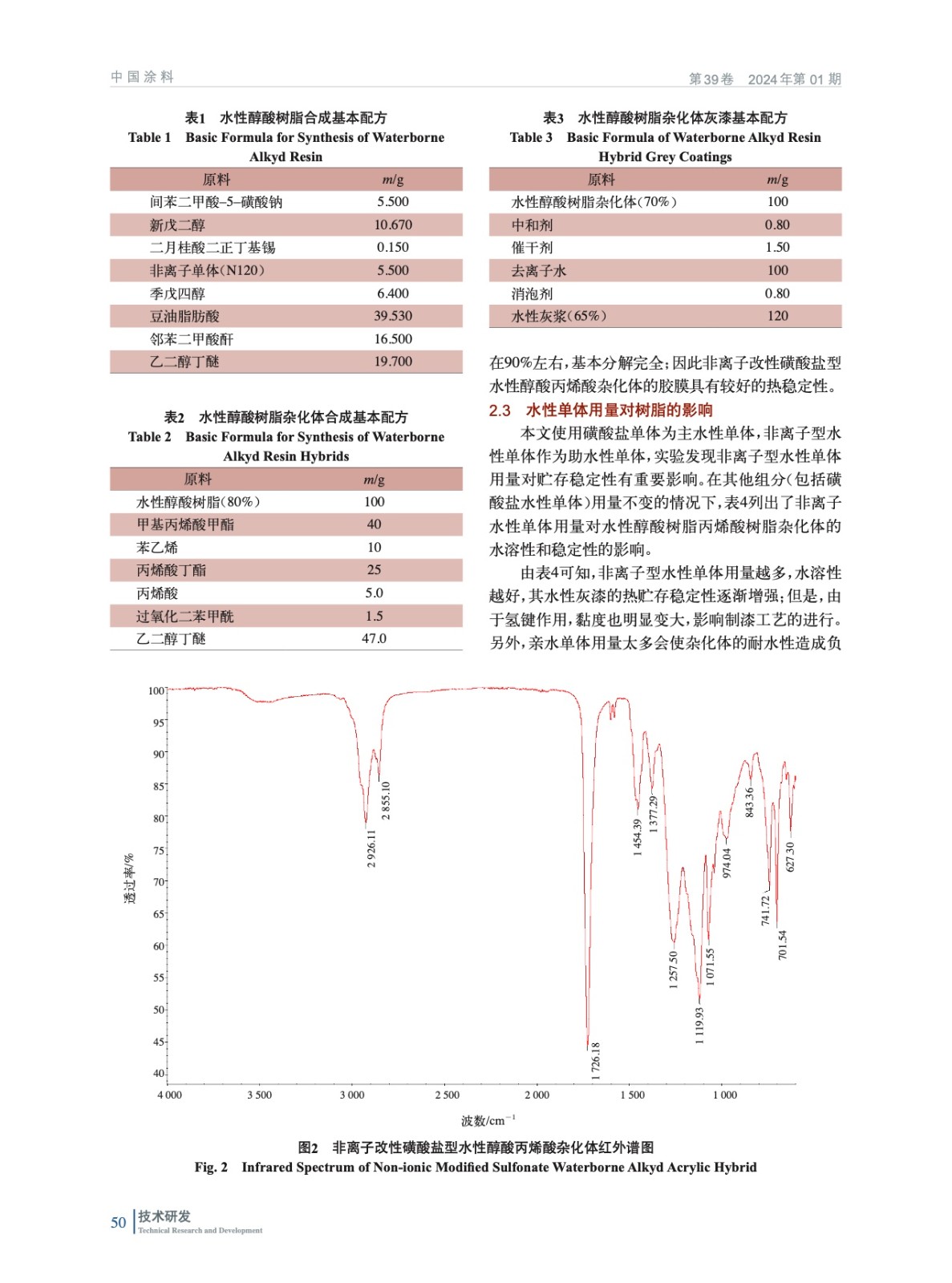 非離子改性水性醇酸樹脂–丙烯酸樹脂雜化體的制備及性能