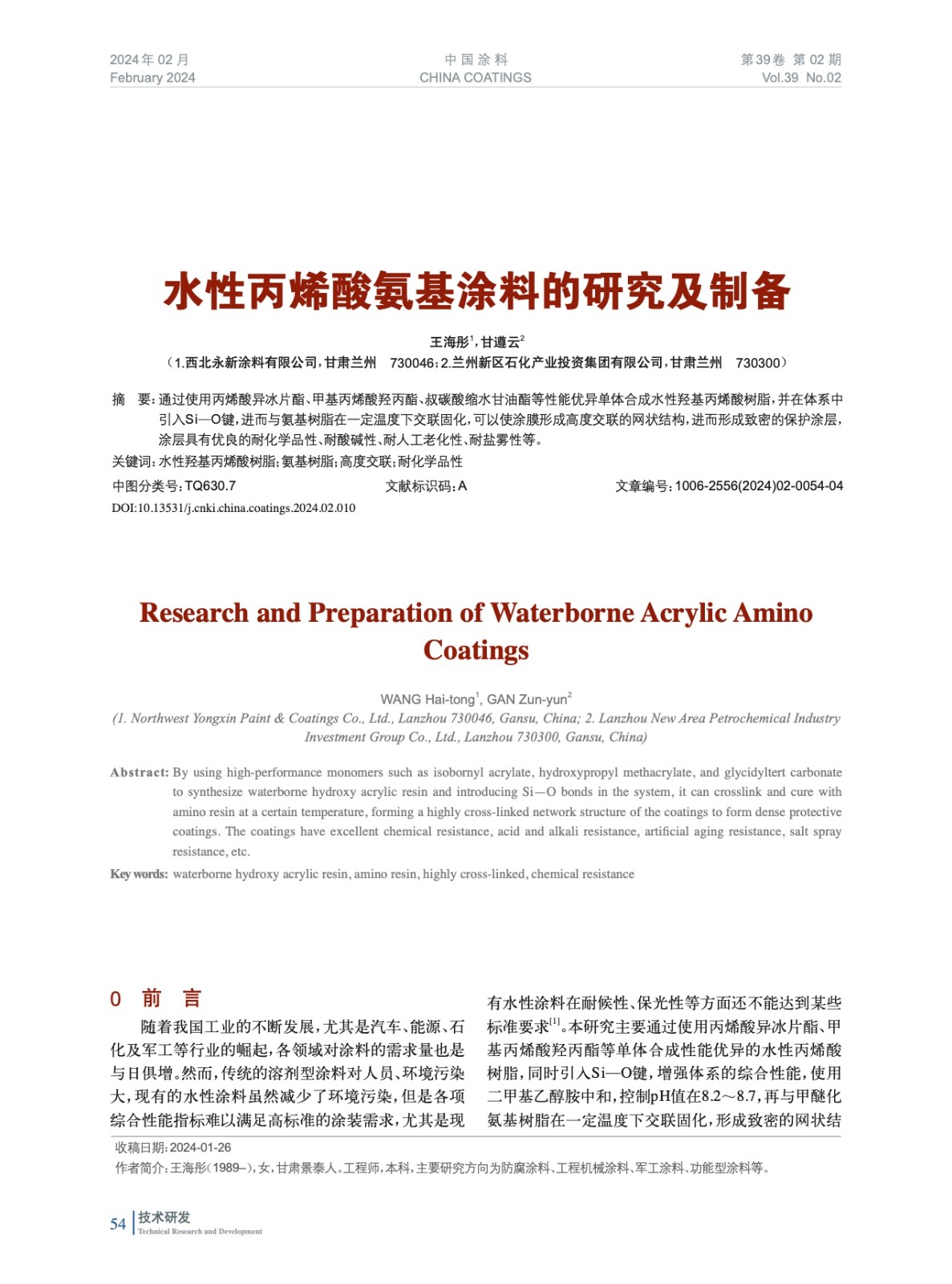本文系作者@王海彤,甘遵云 授權(quán)中國涂料網(wǎng)發(fā)表,并經(jīng)中國涂料網(wǎng)編輯,未經(jīng)允許不得轉(zhuǎn)載,如需轉(zhuǎn)載請聯(lián)系chinacoatingnet@vip.163.com