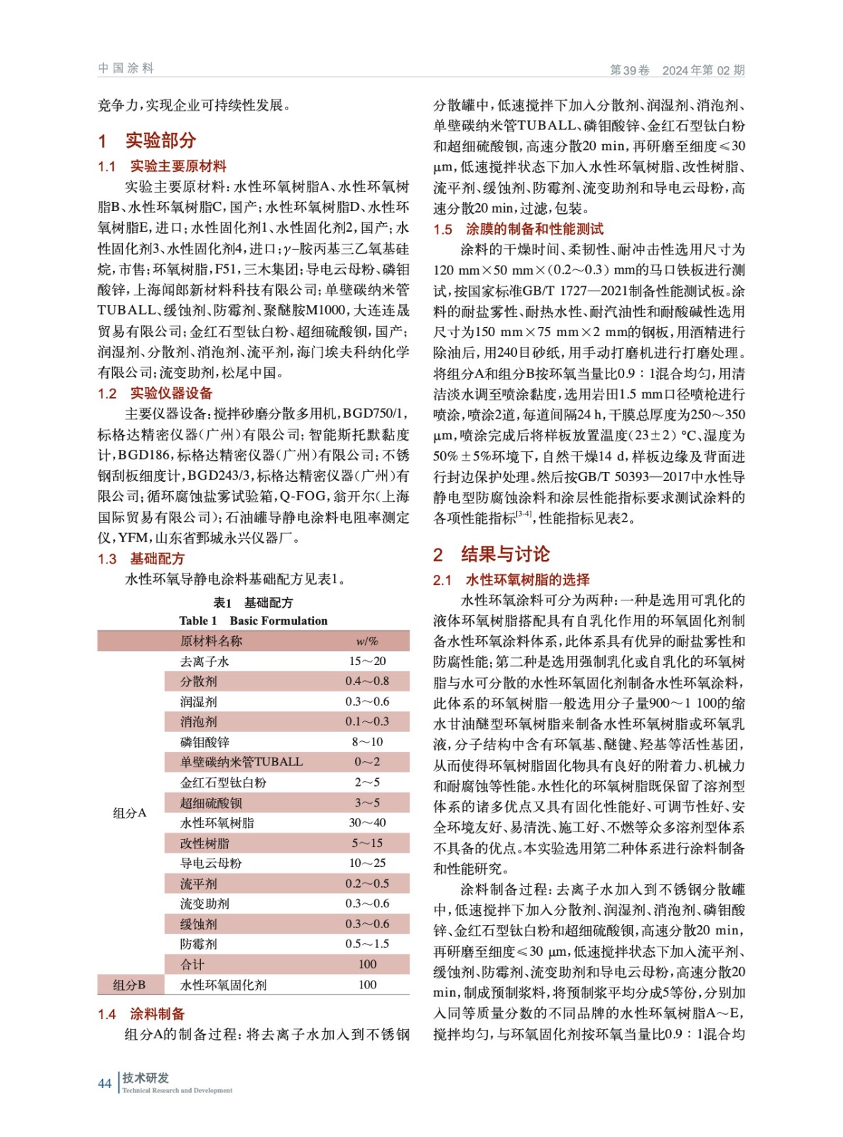 一種水性環(huán)氧導(dǎo)靜電涂料的制備及性能研究