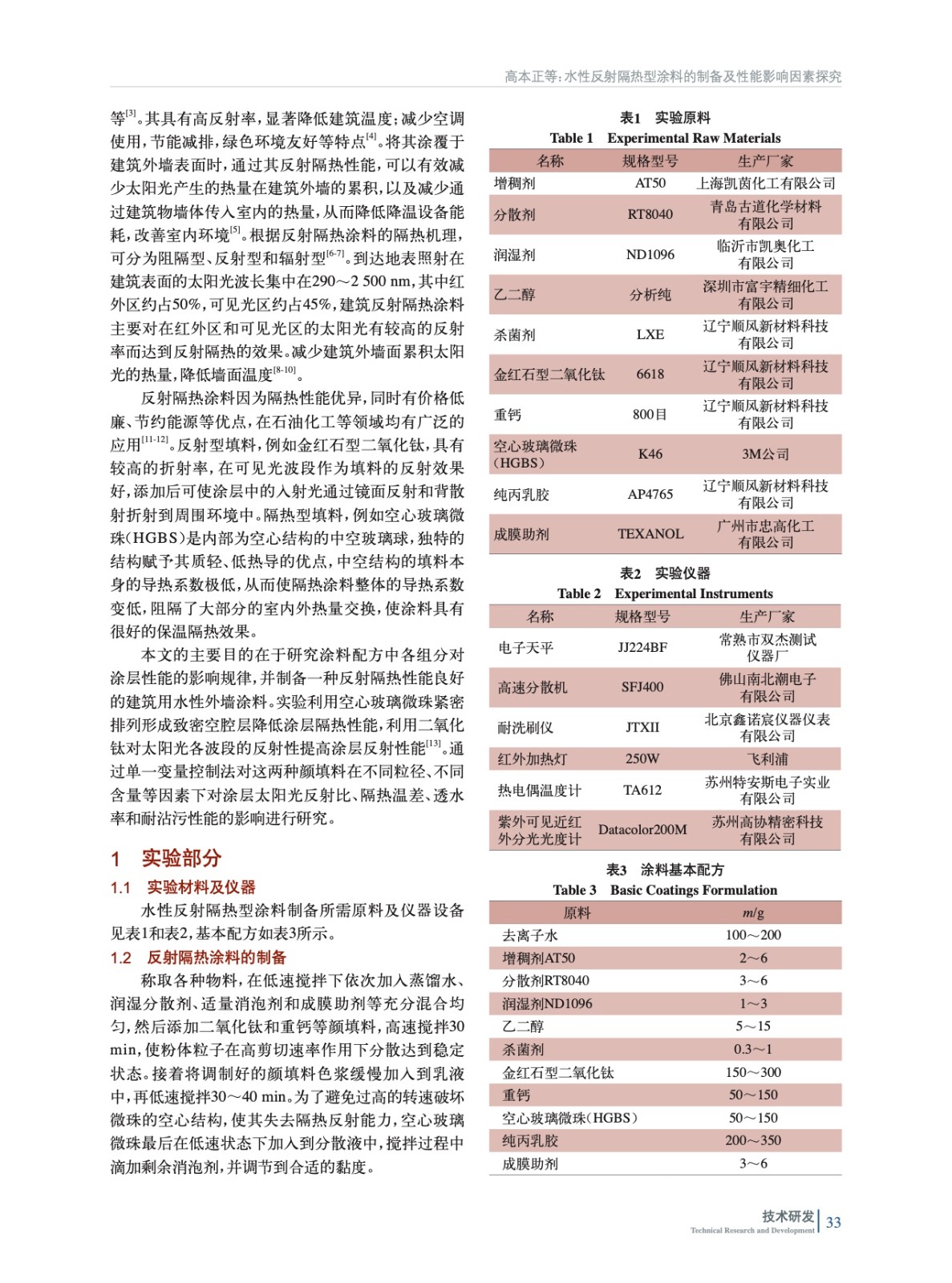 水性反射隔熱型涂料的制備及性能影響因素探究