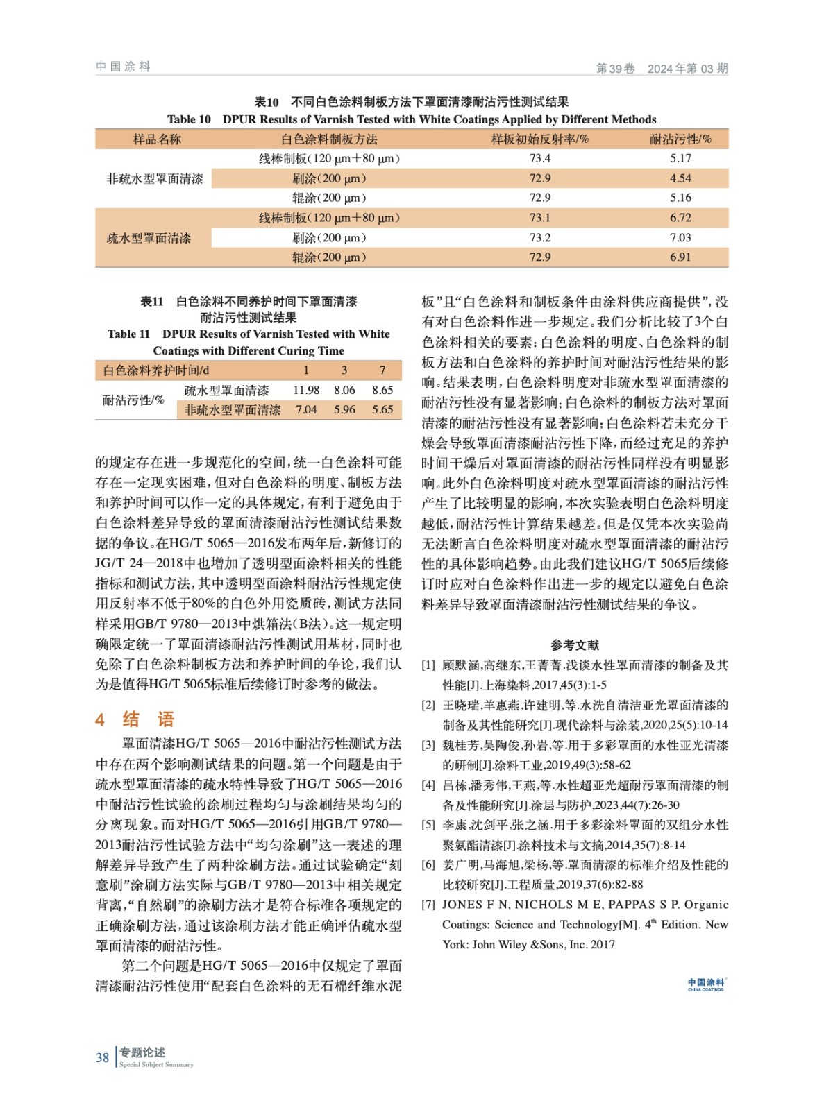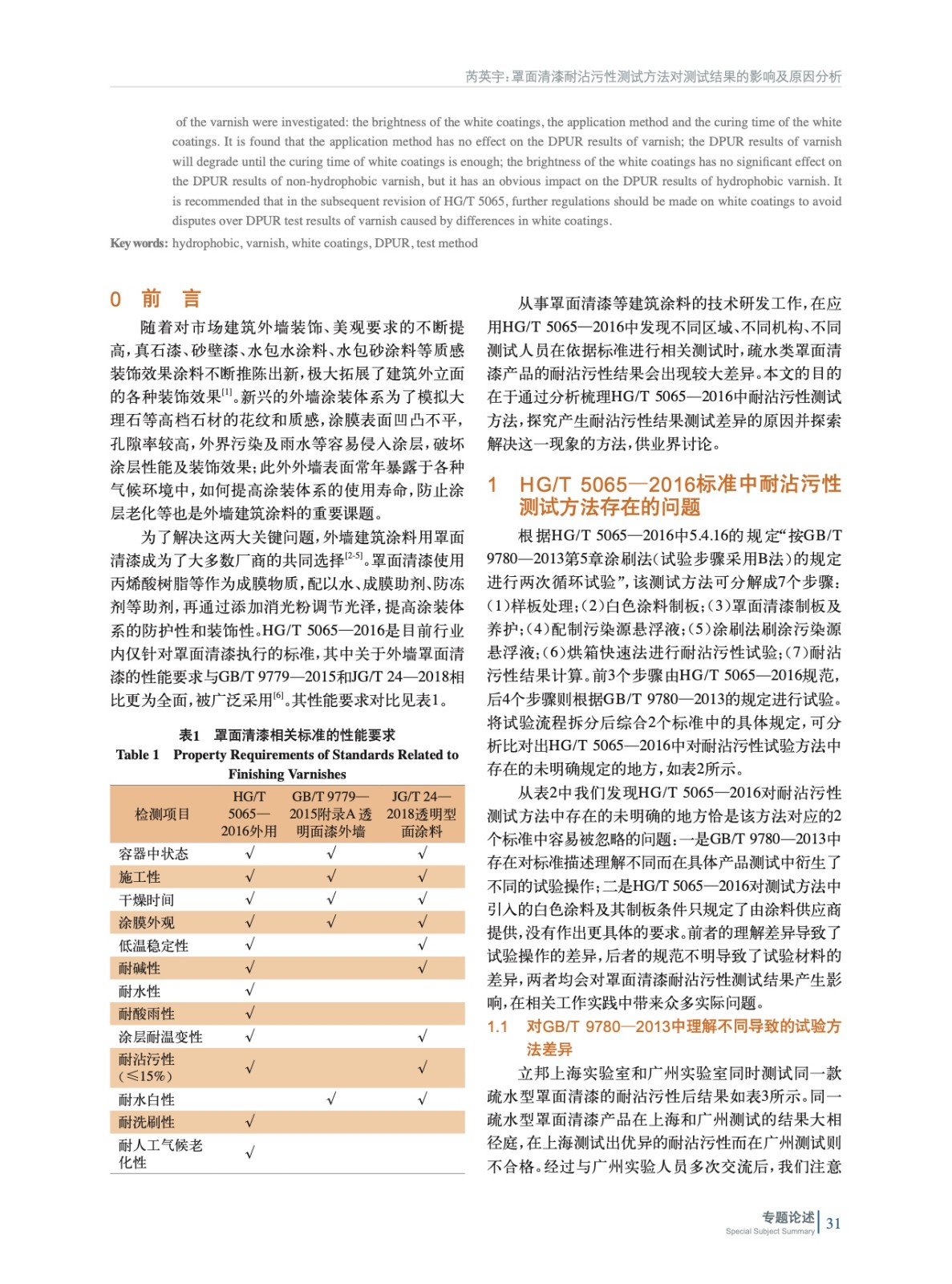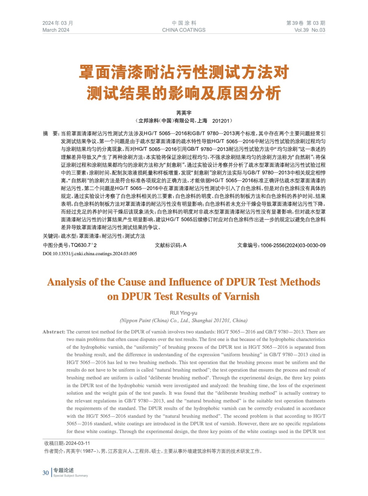 罩面清漆耐沾污性測(cè)試方法對(duì)測(cè)試結(jié)果的影響及原因分析