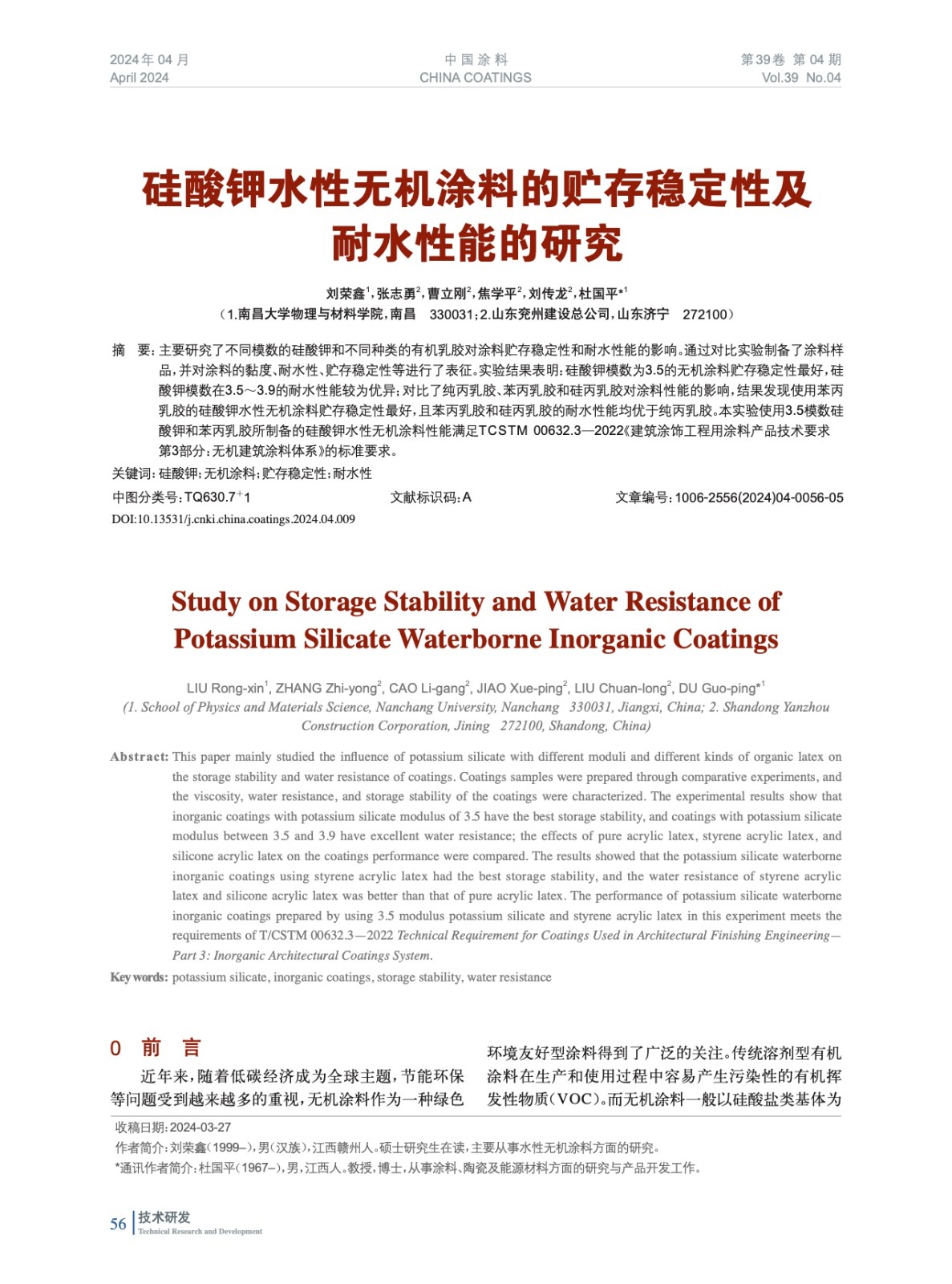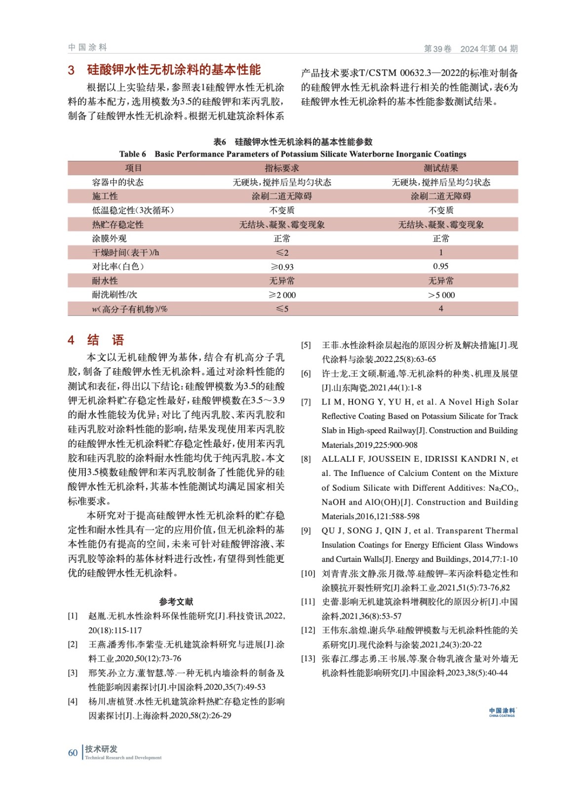 硅酸鉀水性無(wú)機(jī)涂料的貯存穩(wěn)定性及耐水性能的研究
