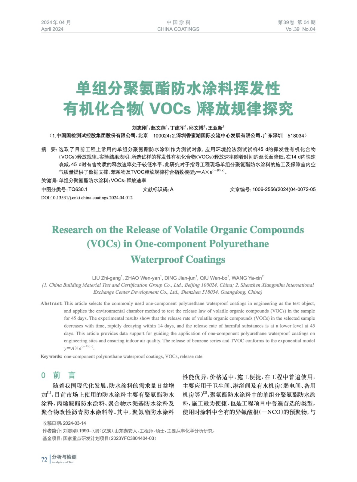發表于2024-06-24 11:10:55| 次閱讀| 來源中國涂料| 作者劉志剛,趙文燕,丁建軍,邱文博,王亞新
