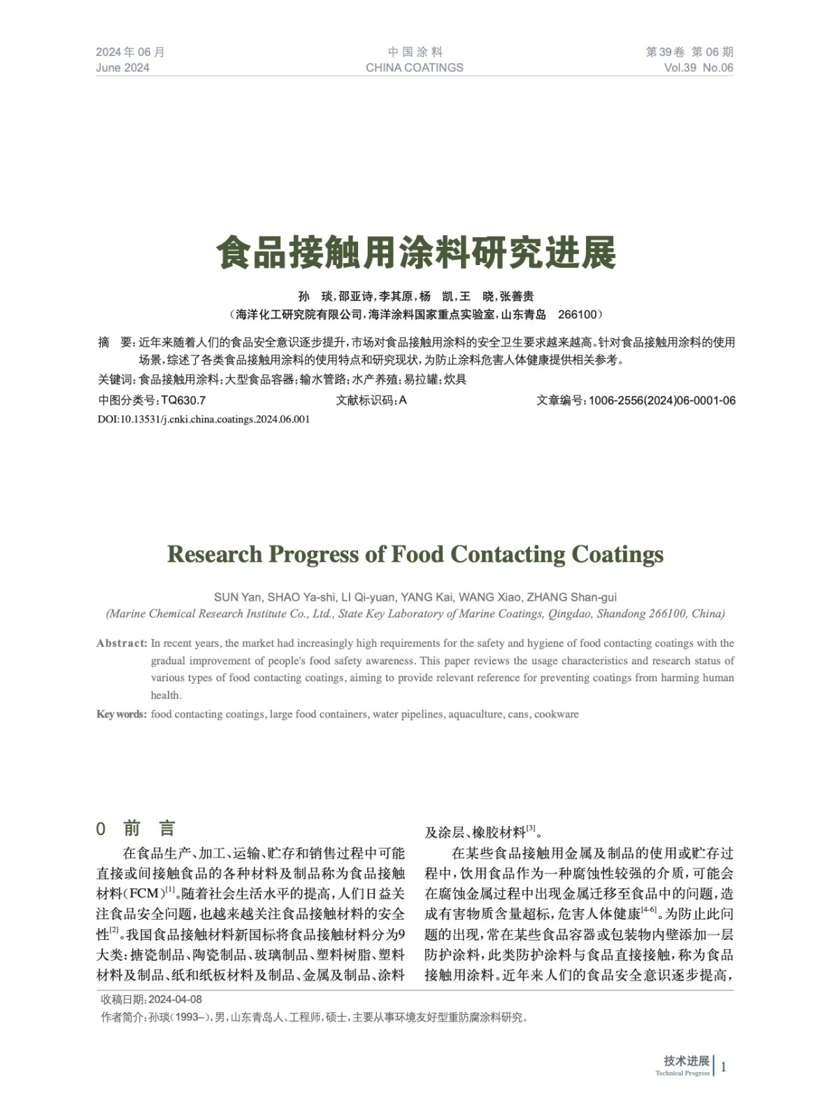 本文系作者@孫 琰,邵亞詩,李其原,楊 凱,王 曉,張善貴 授權中國涂料網發表,并經中國涂料網編輯,未經允許不得轉載,如需轉載請聯系chinacoatingnet@vip.163.com