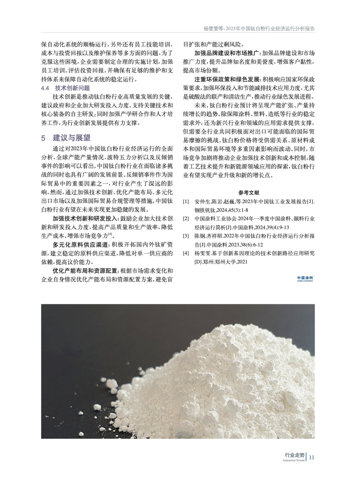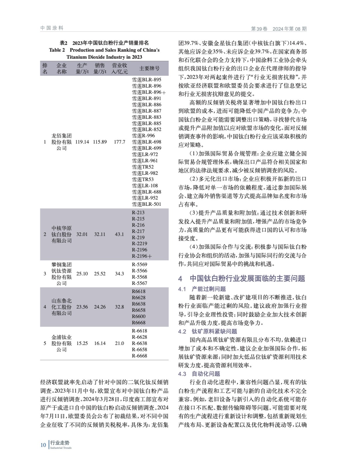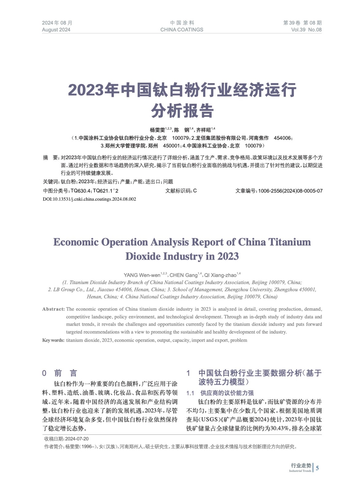 摘要:對2023年中國鈦白粉行業的經濟運行情況進行了詳細分析,涵蓋了生產、需求、競爭格局、政策環境以及技術發展等多個方面。通過對行業數據和市場趨勢的深入研究,揭示了當前鈦白粉行業面臨的挑戰與機遇,并提出了針對性的建議,以期促進行業的可持續健康發展。