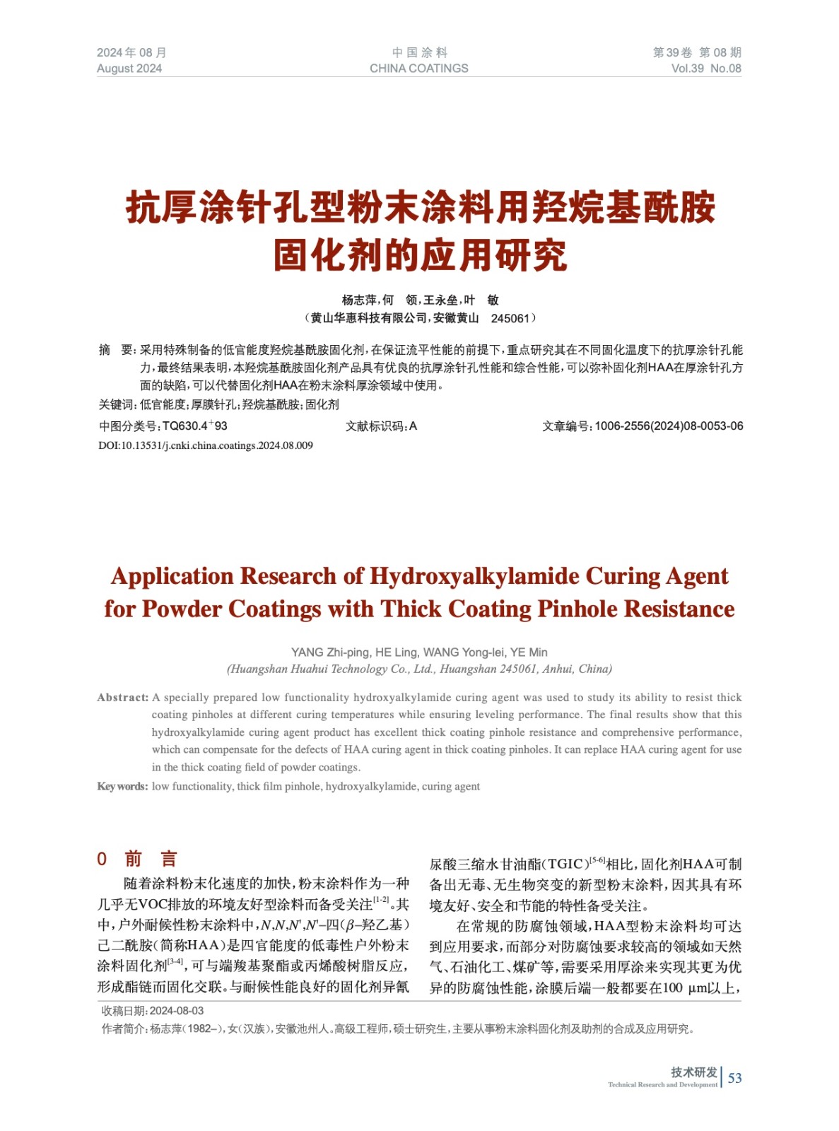 抗厚涂針孔型粉末涂料用羥烷基酰胺固化劑的應用研究