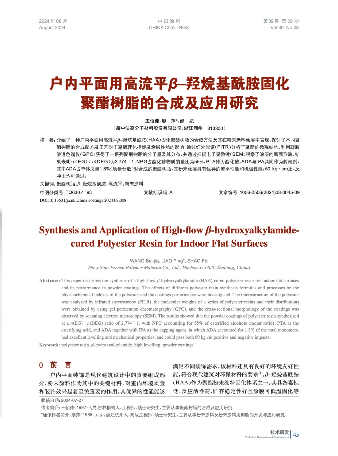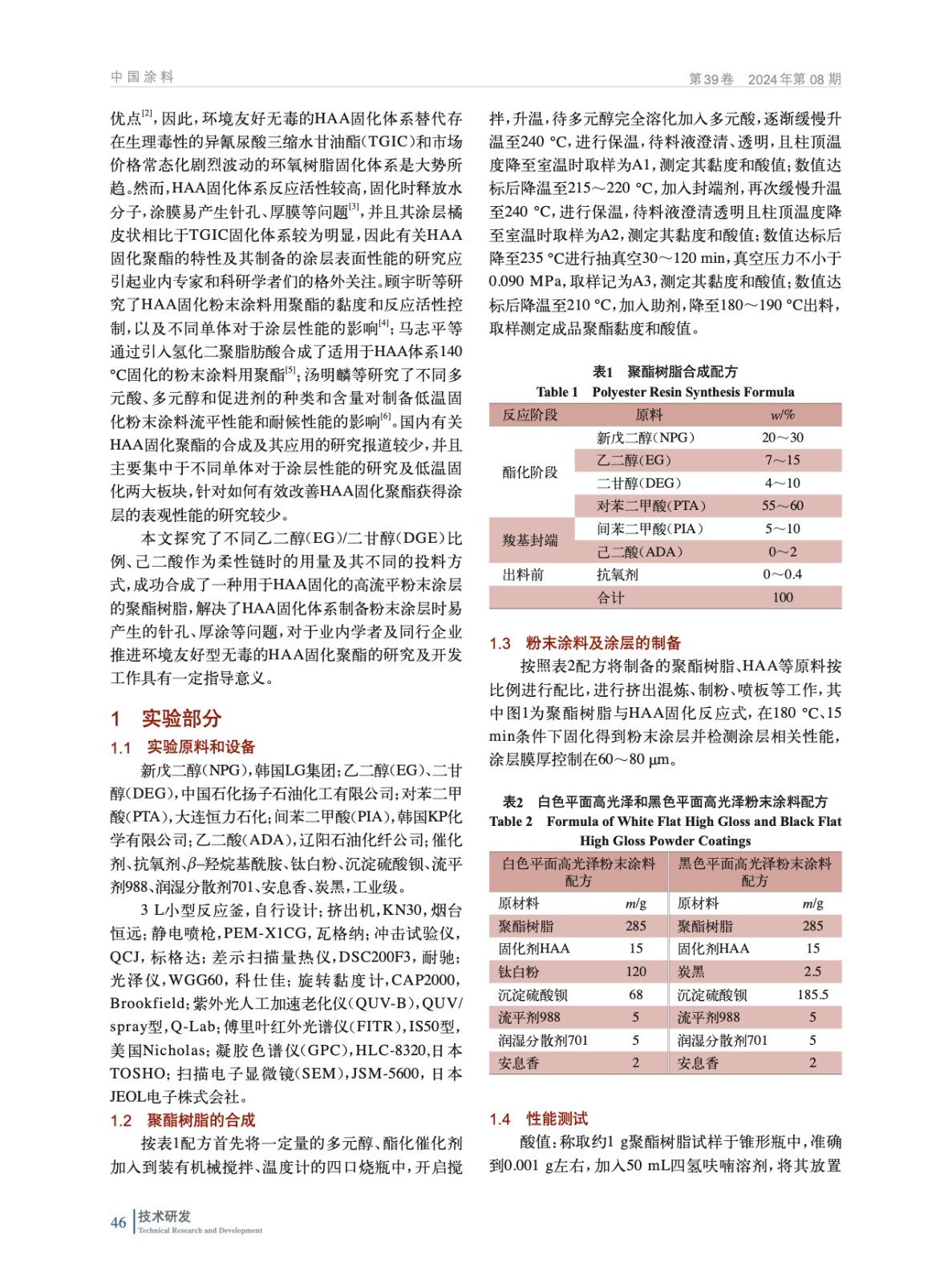 戶內平面用高流平β–羥烷基酰胺固化聚酯樹脂的合成及應用研究