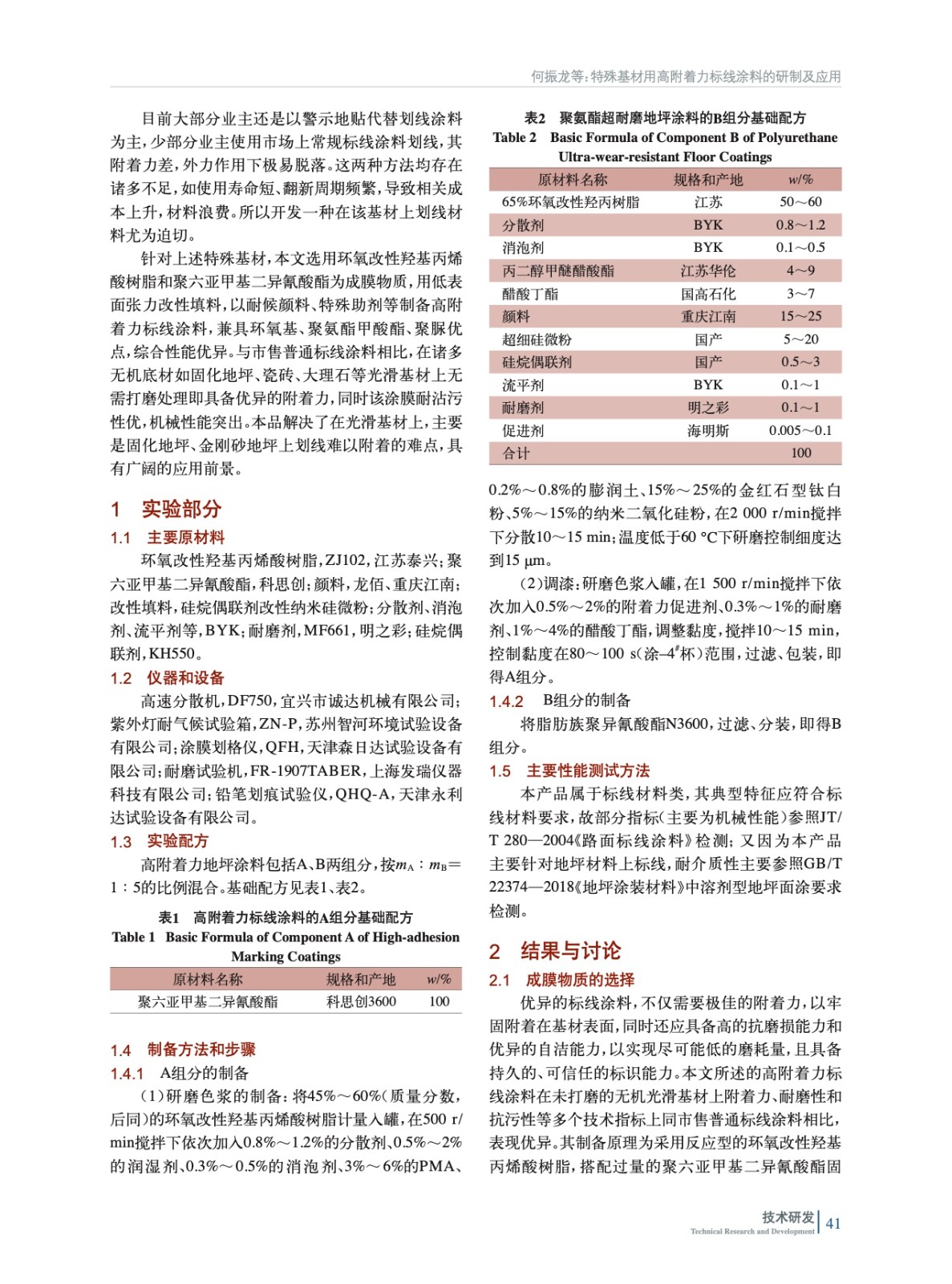 摘要:以改性羥基丙烯酸樹脂和聚六亞甲基二異氰酸酯固化劑為成膜物質,通過調整固化劑配比,改善涂膜機械性能和耐化學品性,優選附著力促進劑,制備一種在固化地坪、金剛砂地坪、瓷磚、玻璃等未經打磨的光滑基材上有優異附著力的標線涂料,該標線涂料綜合聚氨基甲酸酯、聚脲的優點,可廣泛用于上述基材的標線標識涂裝,具有極高的經濟效益。