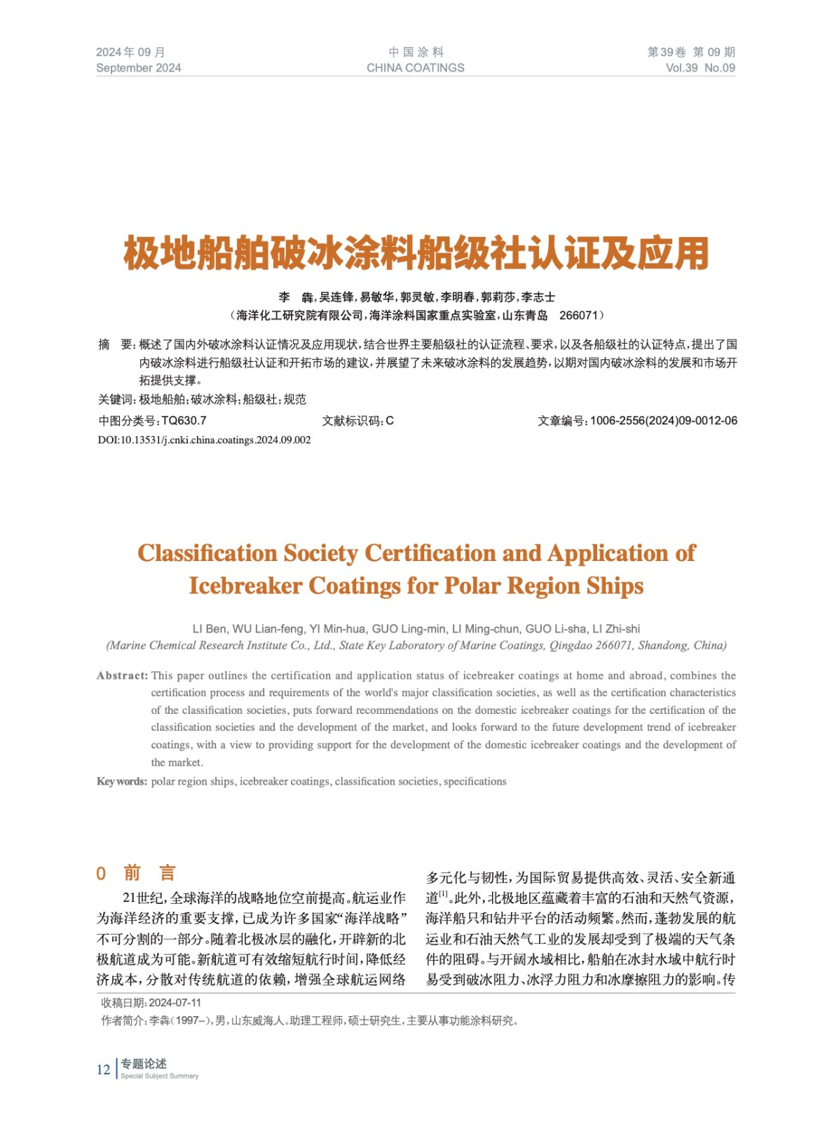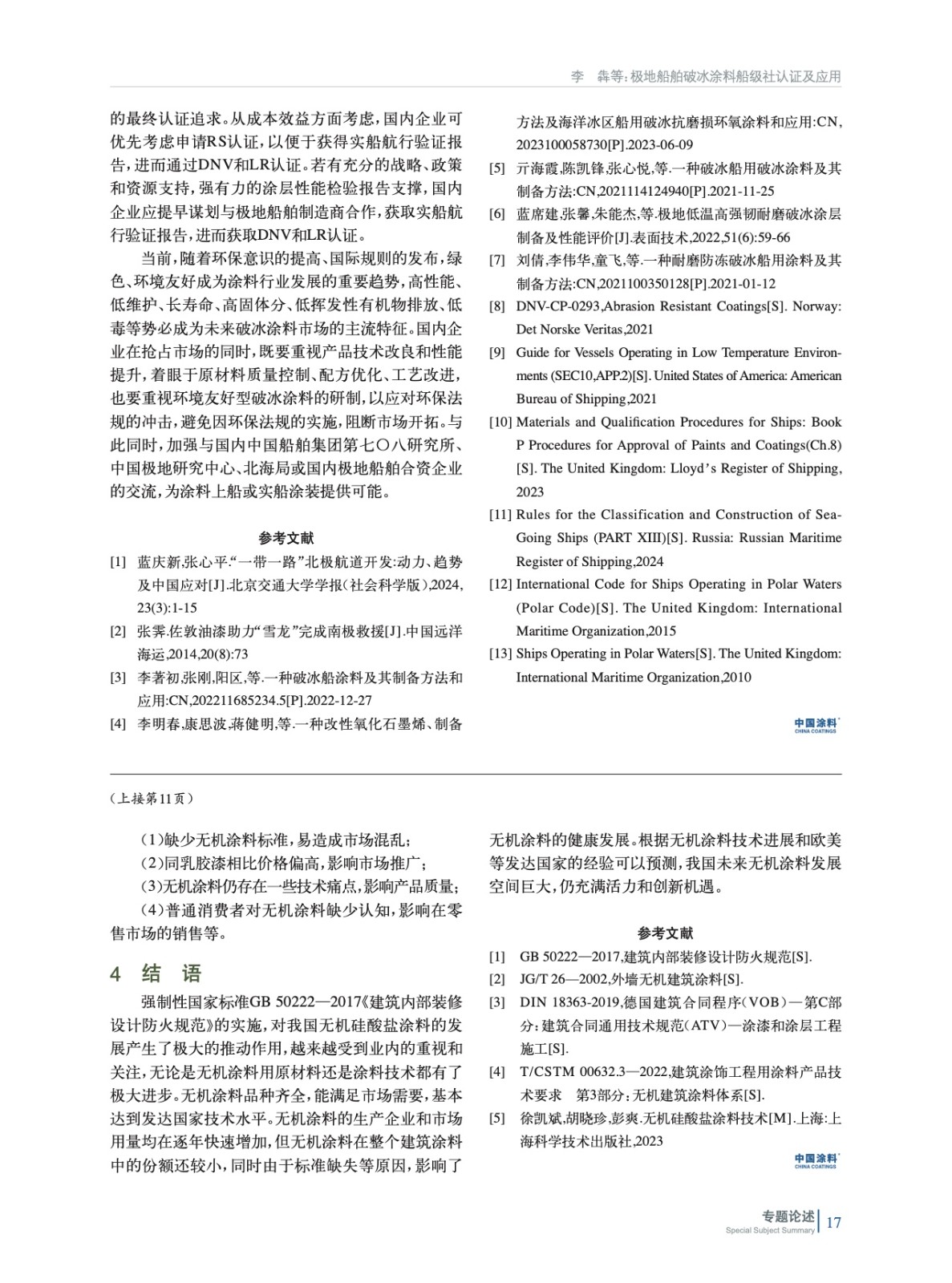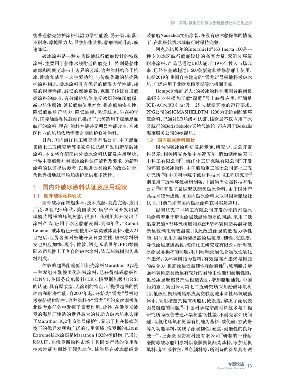 概述了國內外破冰涂料認證情況及應用現狀,結合世界主要船級社的認證流程、要求,以及各船級社的認證特點,提出了國內破冰涂料進行船級社認證和開拓市場的建議,并展望了未來破冰涂料的發展趨勢,以期對國內破冰涂料的發展和市場開拓提供支撐。