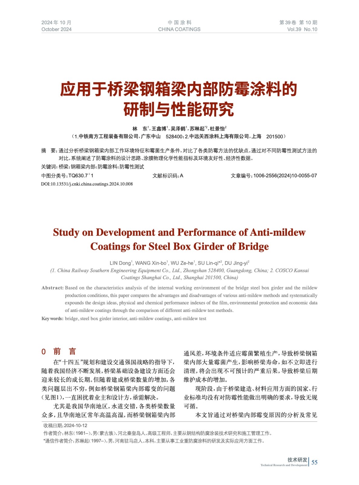 本文系作者@林 東,王鑫博,吳澤鶴,蘇琳起,杜景怡 授權(quán)中國涂料網(wǎng)發(fā)表,并經(jīng)中國涂料網(wǎng)編輯,未經(jīng)允許不得轉(zhuǎn)載,如需轉(zhuǎn)載請聯(lián)系chinacoatingnet@vip.163.com