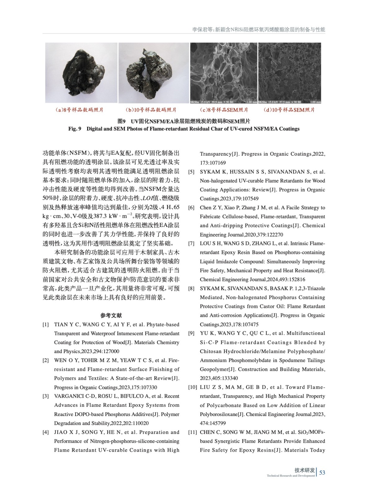 新穎含N和Si阻燃環氧丙烯酸酯涂層的制備與性能