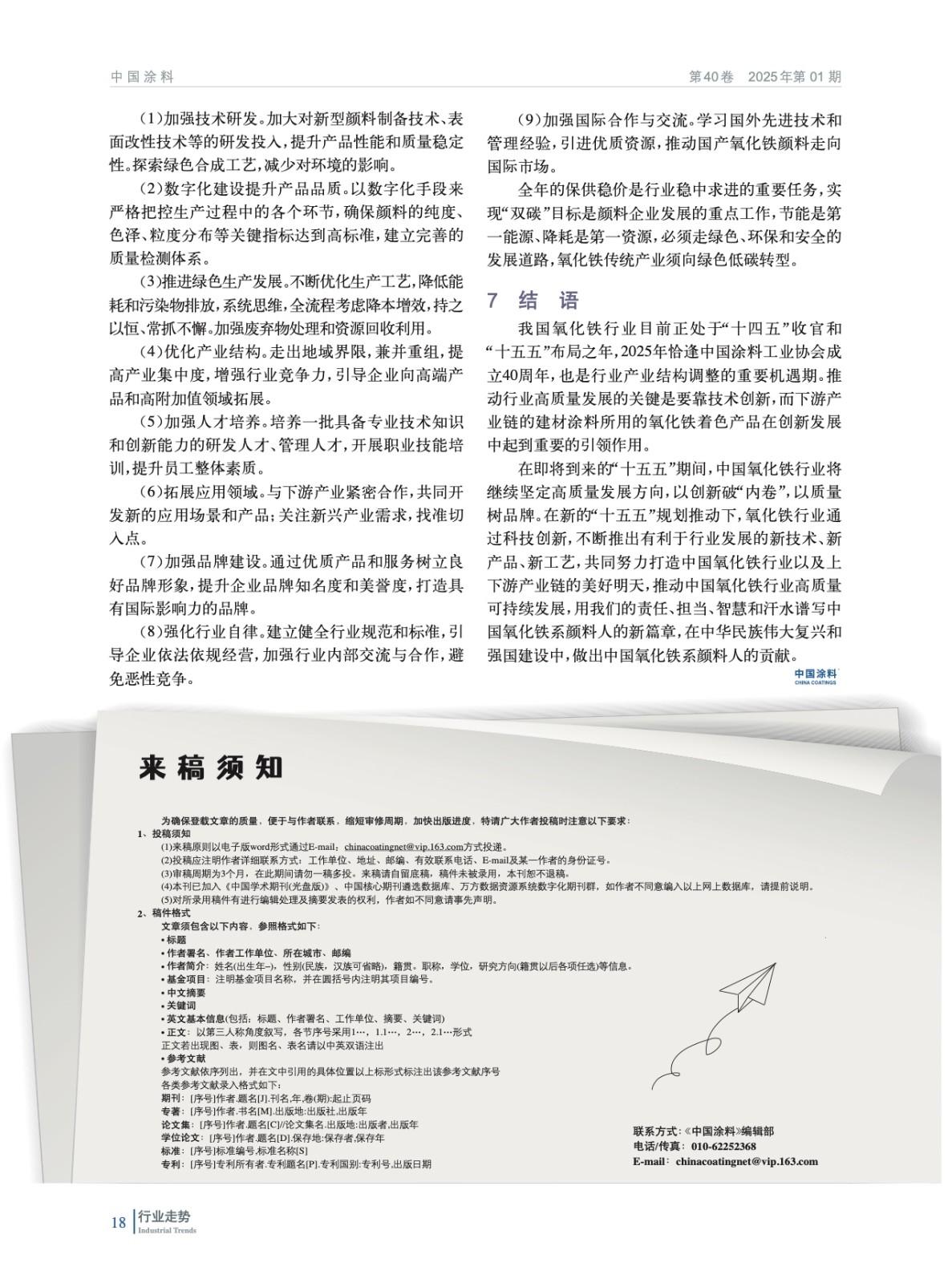 綜述了2024年中國氧化鐵行業所處的經濟環境,梳理了各項技術經濟指標完成情況、生產營銷情況,并對行業進出口數據進行了分析,回顧了氧化鐵行業2024年整體運行情況,并對2025年發展方向進行了展望。