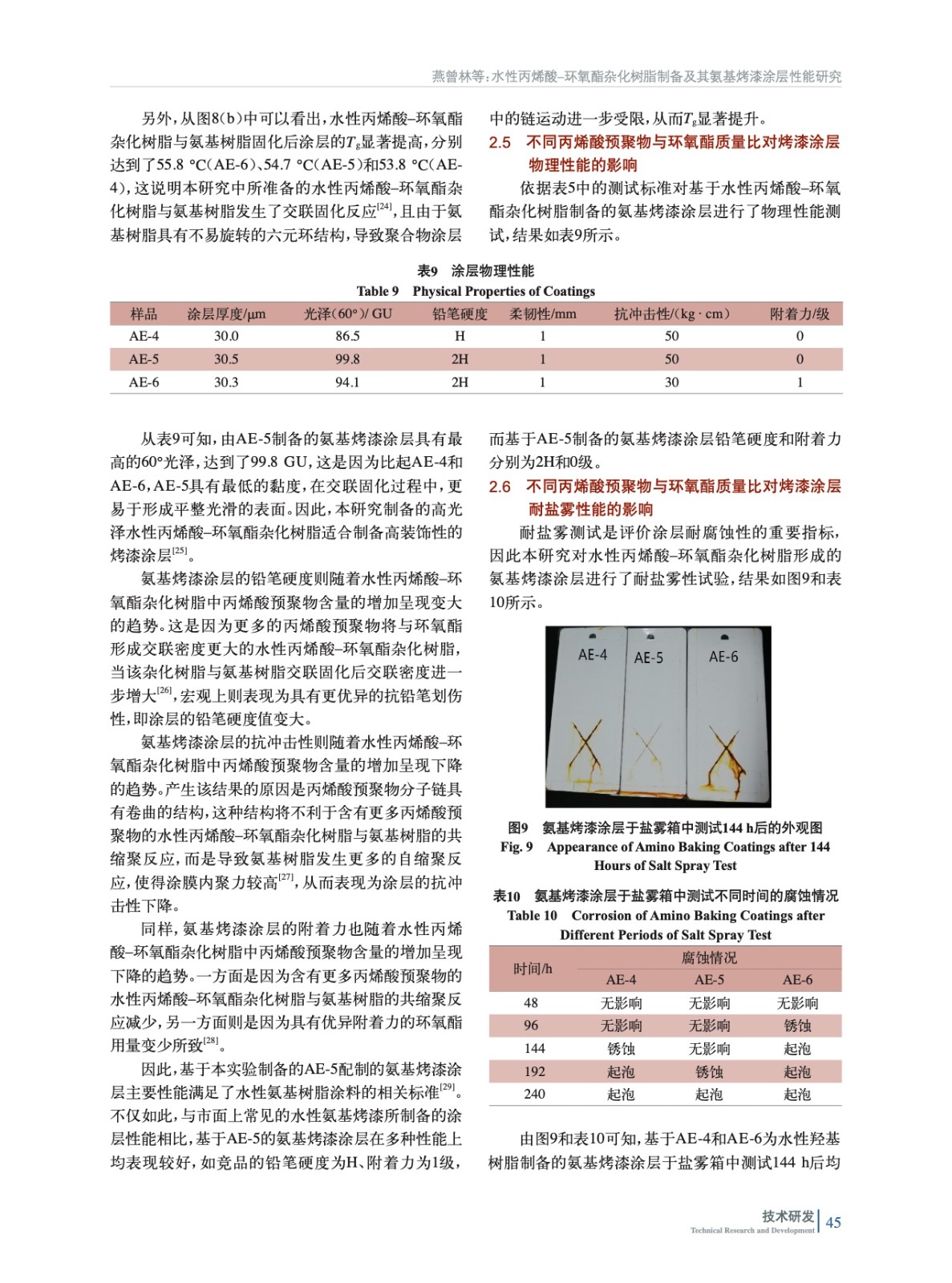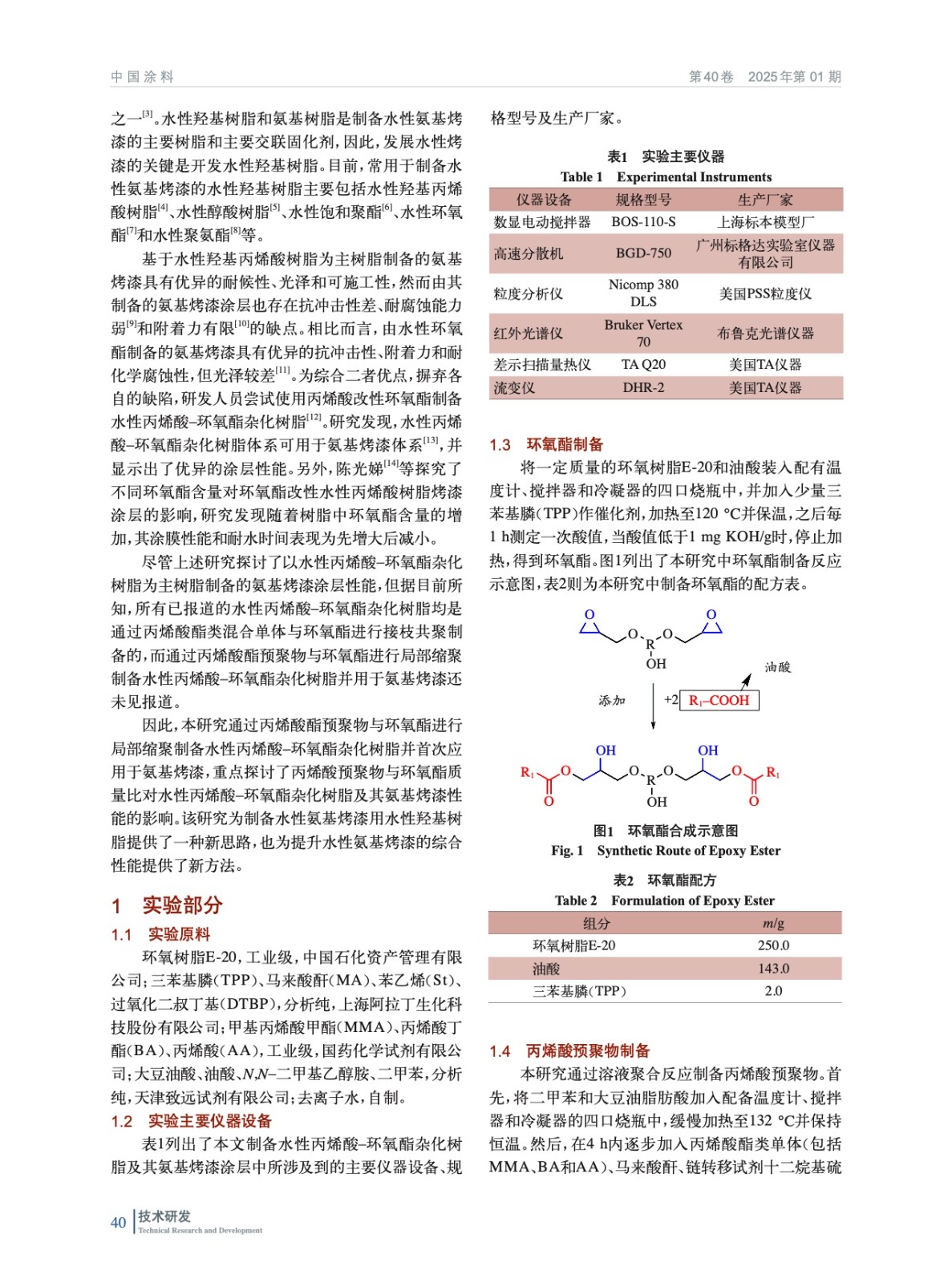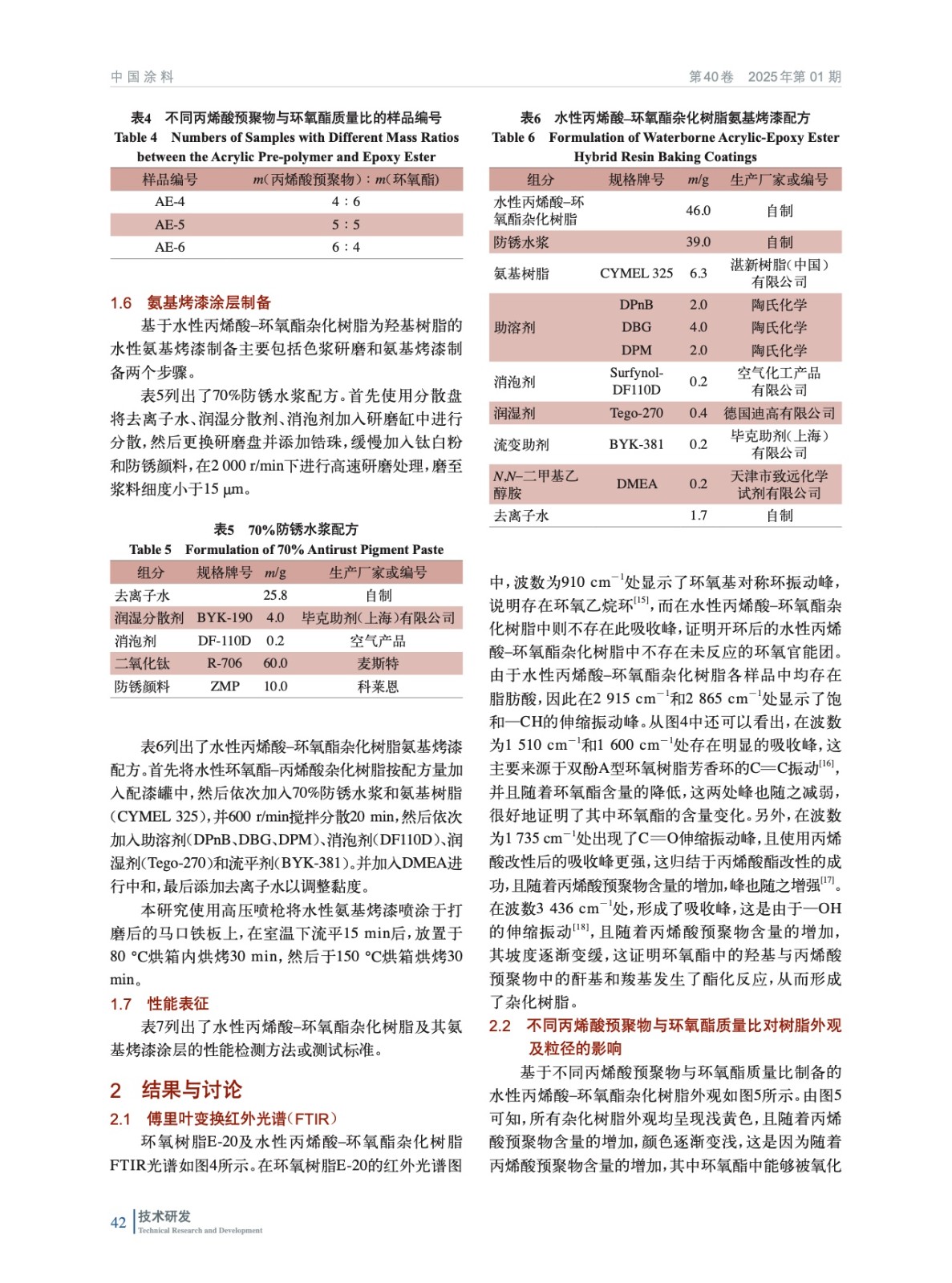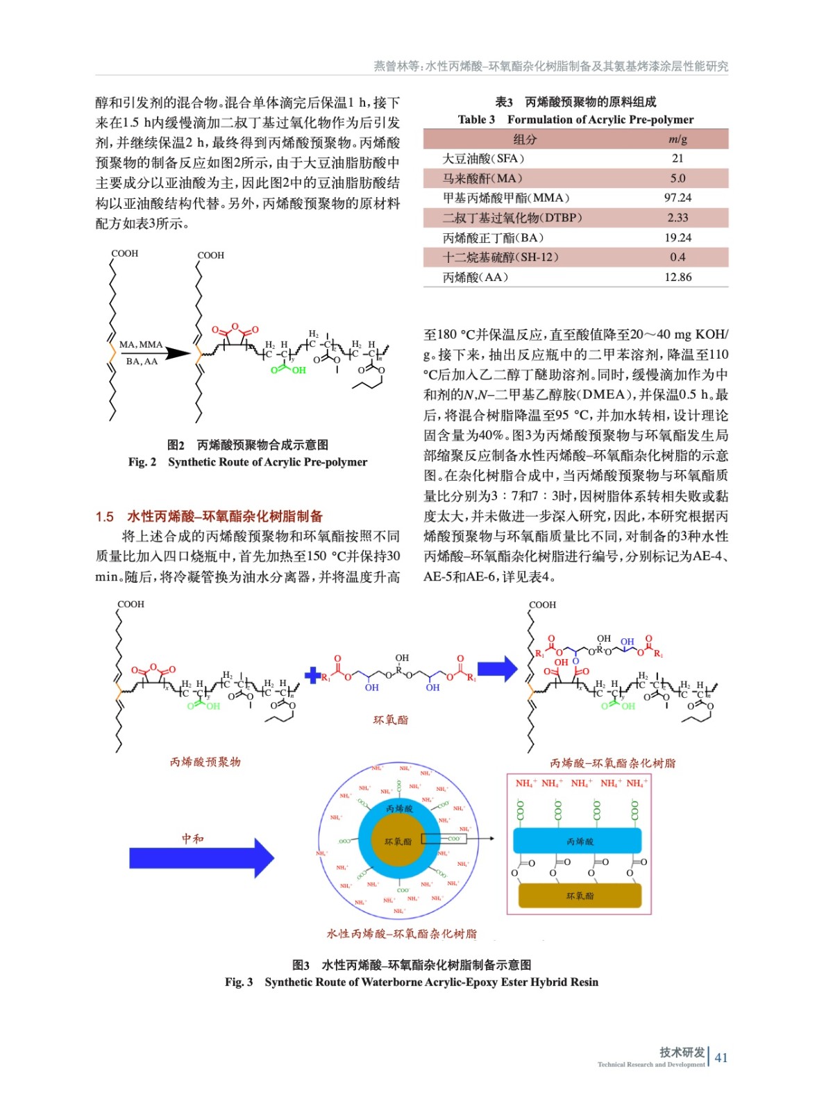 水性丙烯酸–環氧酯雜化樹脂制備及其氨基烤漆涂層性能研究