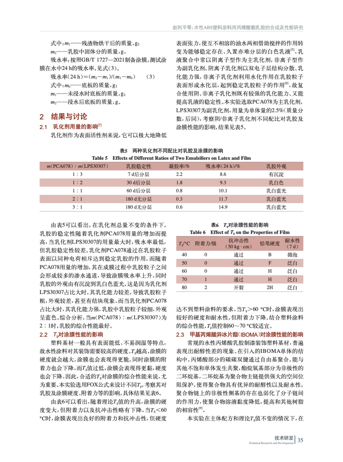 水性ABS塑料涂料用丙烯酸酯乳膠的合成及性能研究