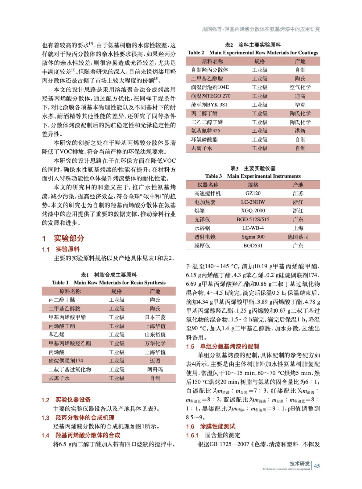 羥基丙烯酸分散體在氨基烤漆中的應(yīng)用研究