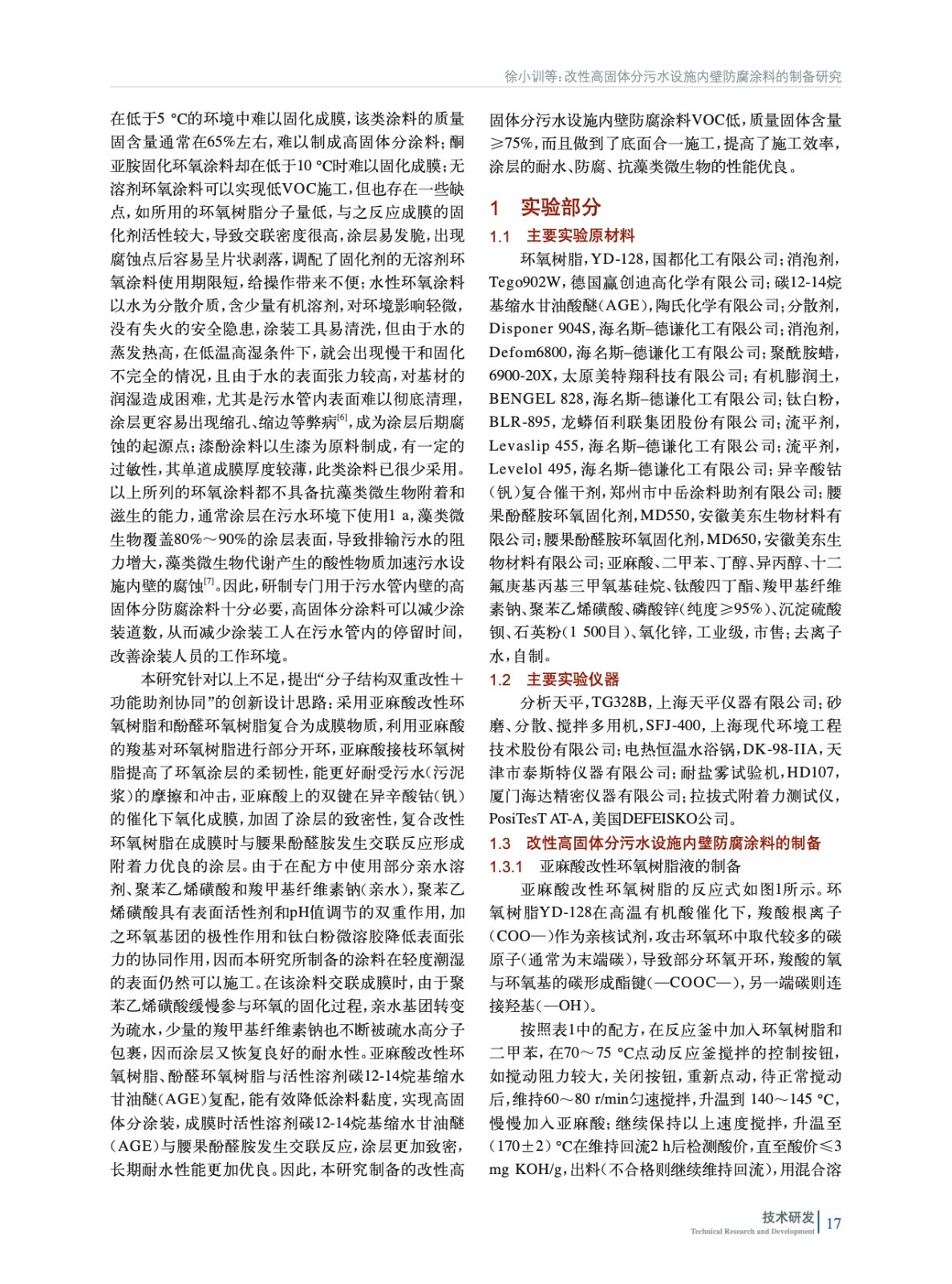 改性高固體分污水設(shè)施內(nèi)壁防腐涂料的制備研究