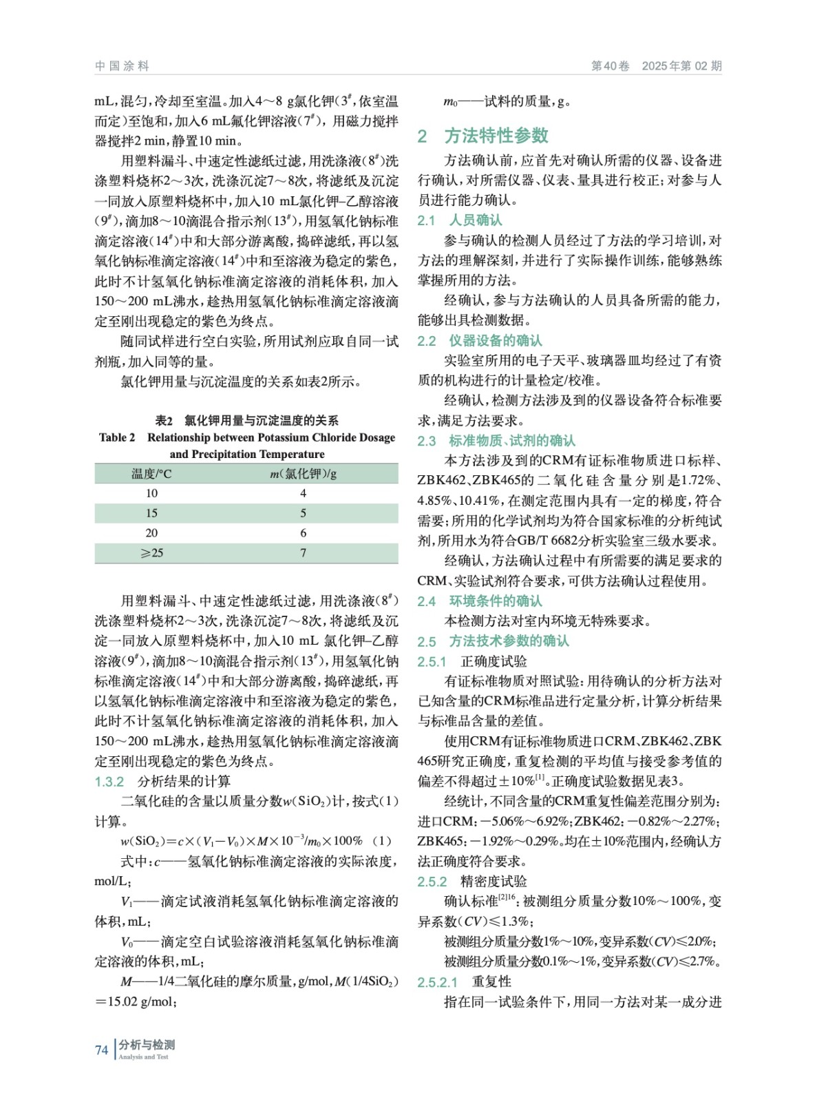 摘要:開發(fā)氟硅酸鉀法測定鈦白粉二氧化硅含量的新方法,通過人員、儀器設(shè)備、標(biāo)準(zhǔn)物質(zhì)、試劑、環(huán)境條件的確認(rèn)和正確度試驗(yàn)、精密度試驗(yàn)、回收率的方法特性確認(rèn),完成方法開發(fā)。該方法的開發(fā)克服了研發(fā)過程中硅、鋁比例高、結(jié)果檢測不穩(wěn)定的問題,確保了良好的硅鋁比例,可以很好地保證鈦白粉在不同應(yīng)用領(lǐng)域中適用性,確保高耐候性能涂料用鈦白粉的研發(fā)和產(chǎn)業(yè)化,推動涂料行業(yè)高技術(shù)發(fā)展。
