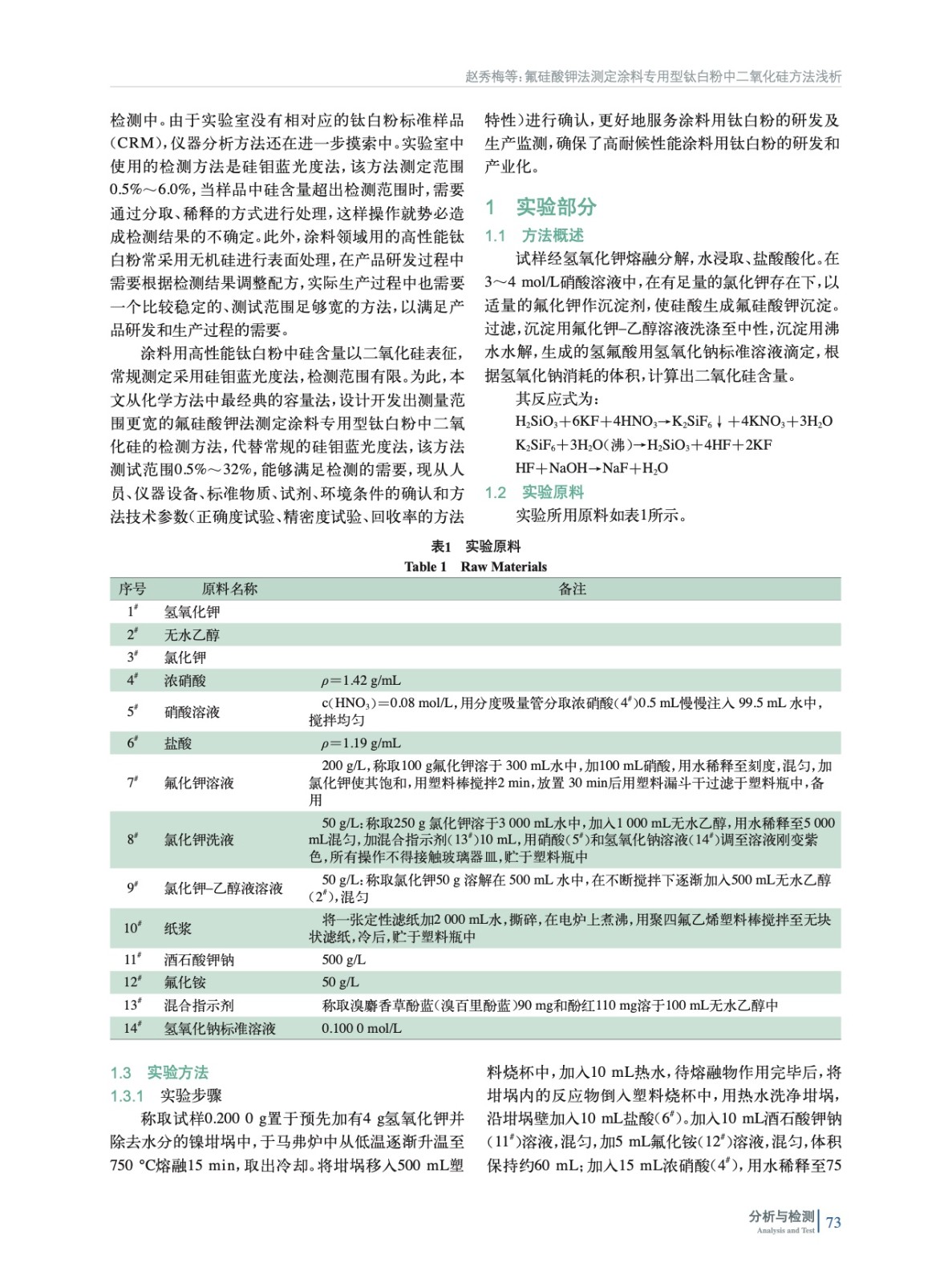 氟硅酸鉀法測定涂料專用型鈦白粉中二氧化硅方法淺析