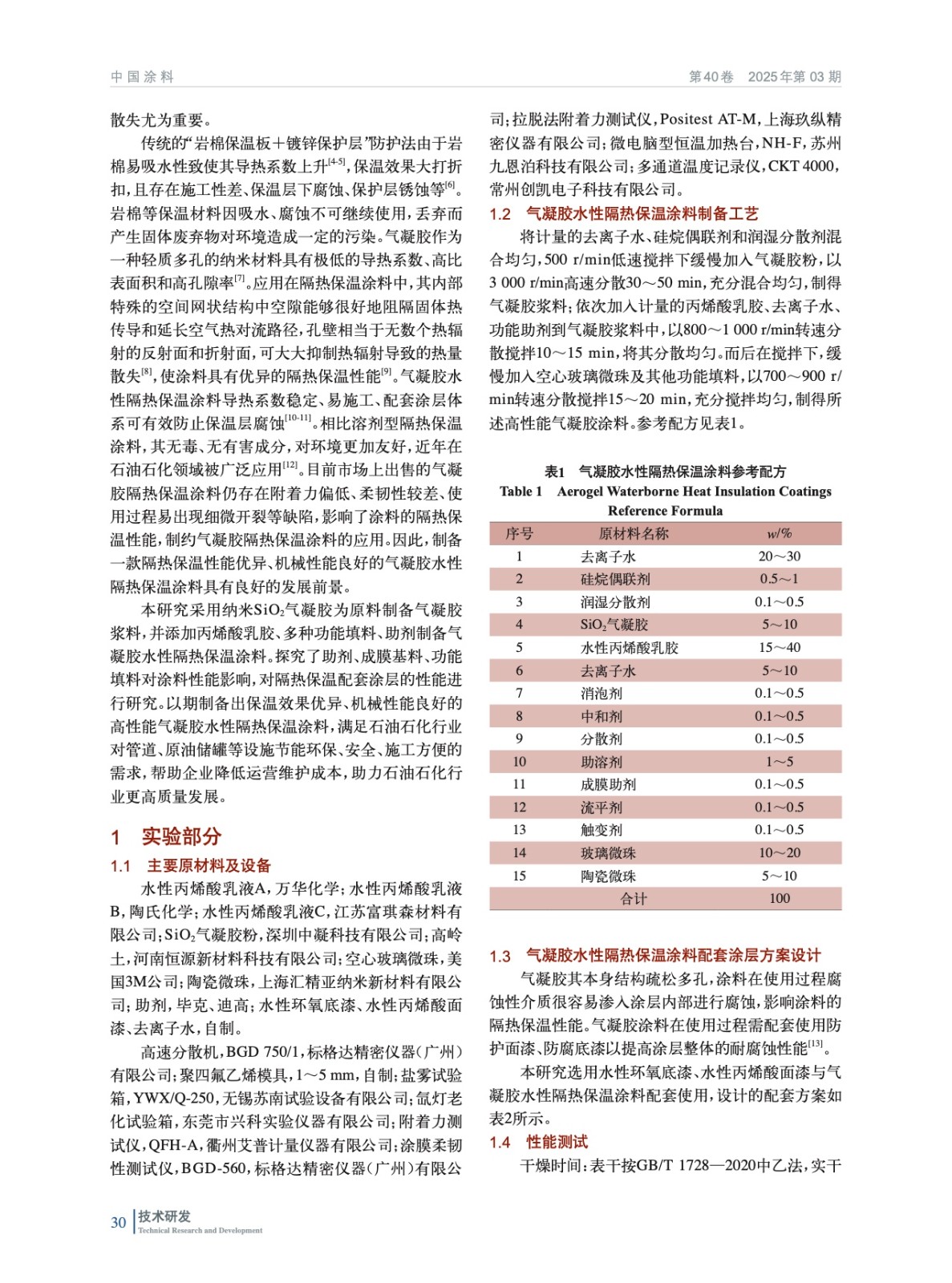 氣凝膠水性隔熱保溫涂料制備與性能研究