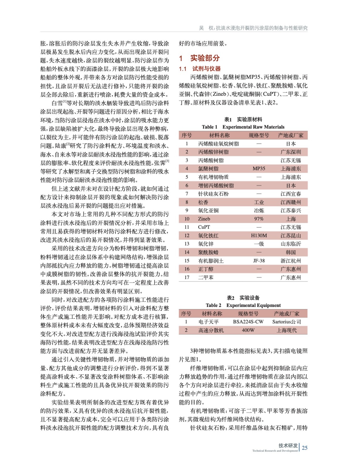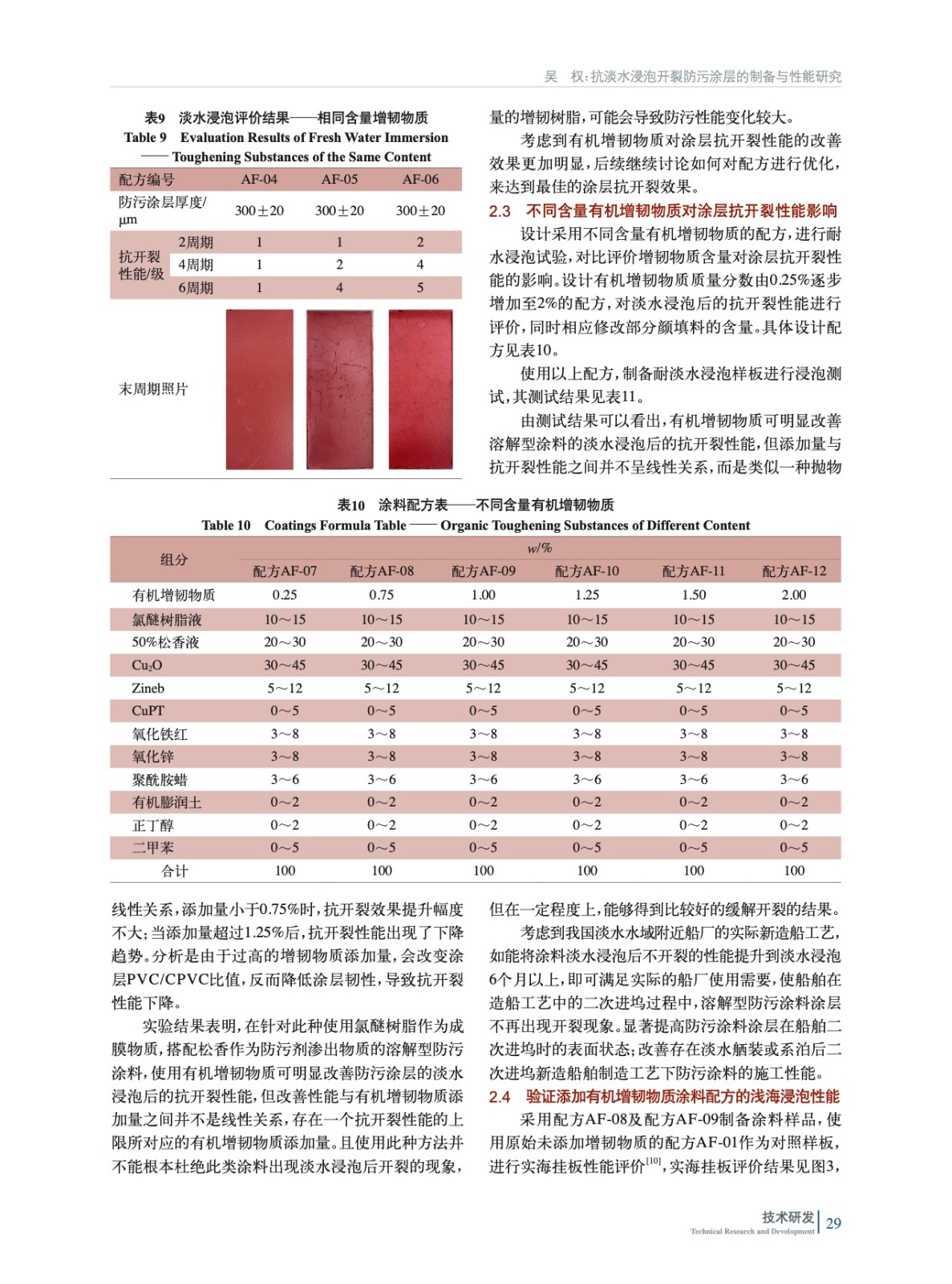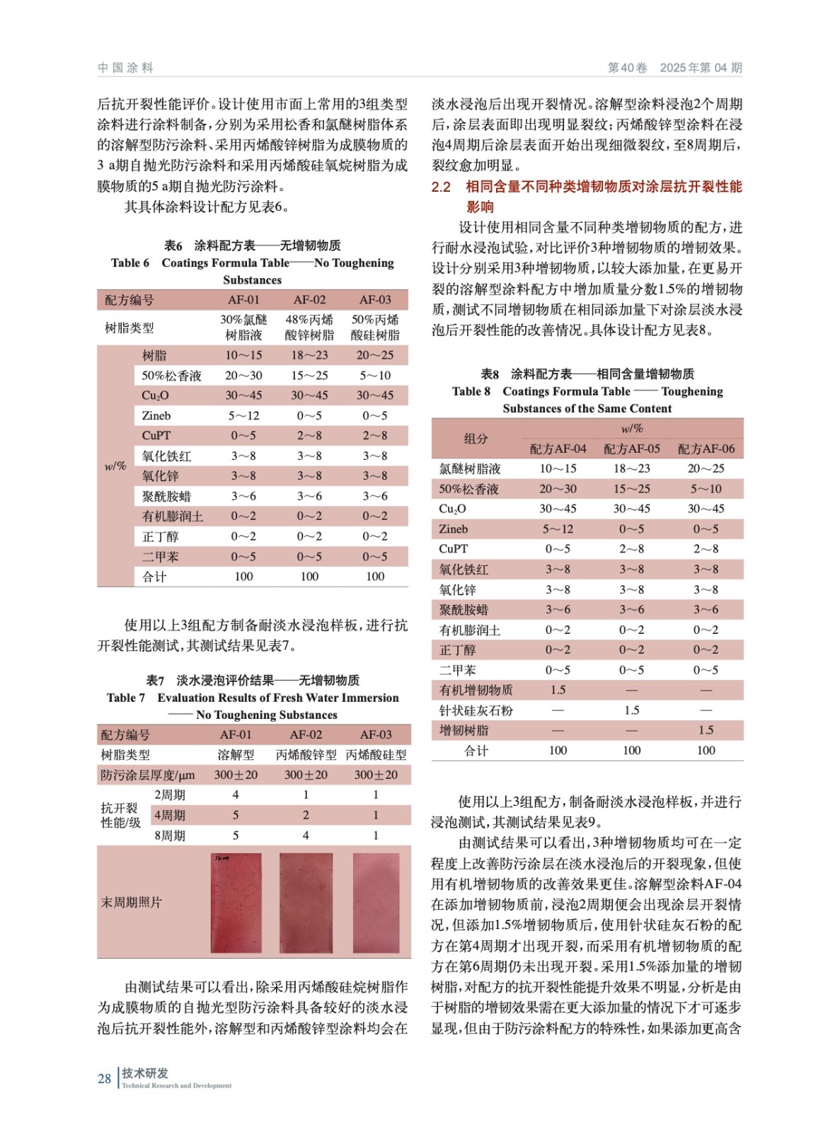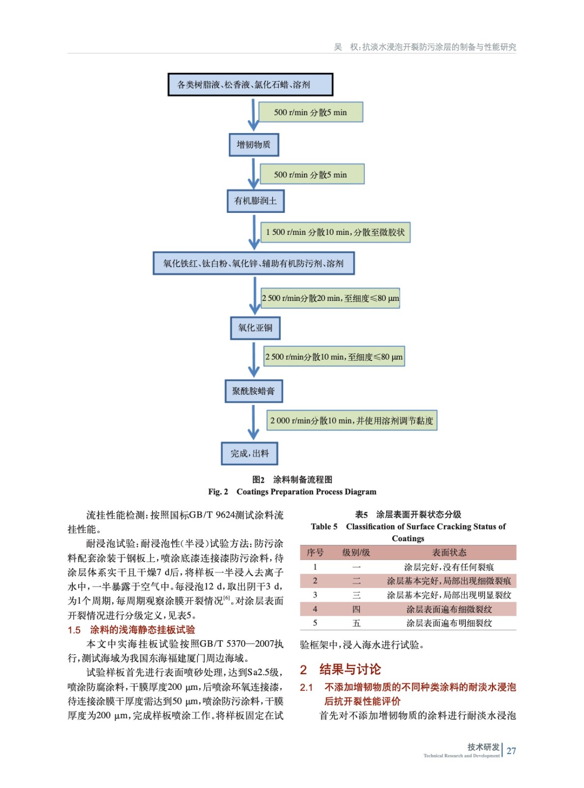 抗淡水浸泡開(kāi)裂防污涂層的制備與性能研究