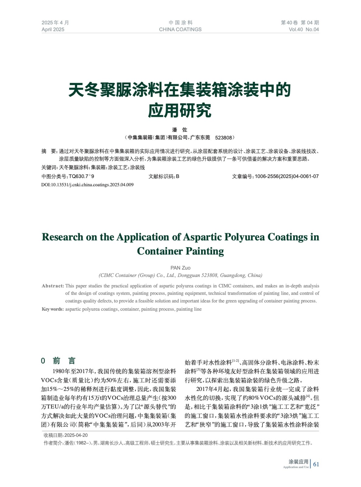 天冬聚脲涂料在集裝箱涂裝中的應用研究
