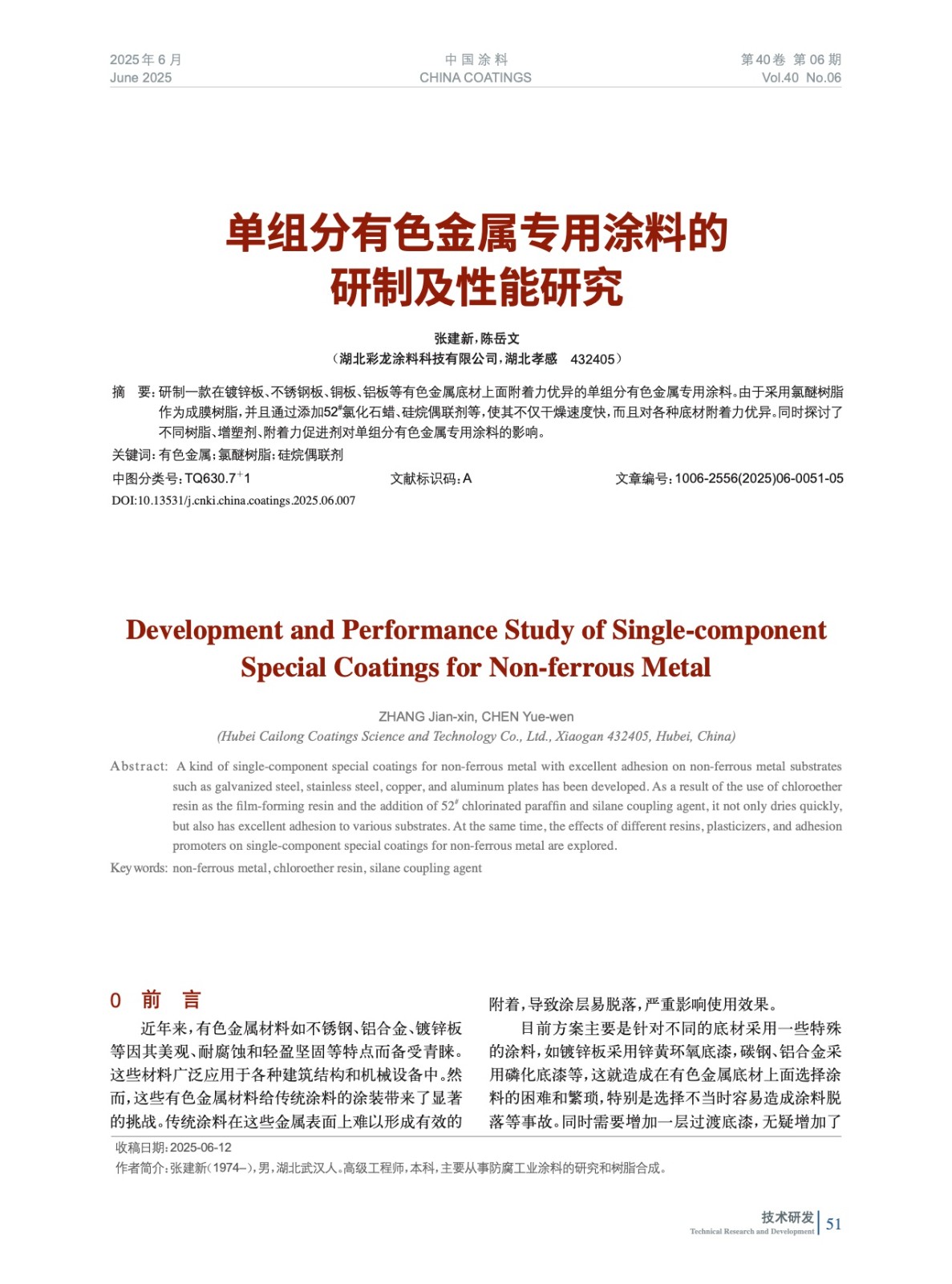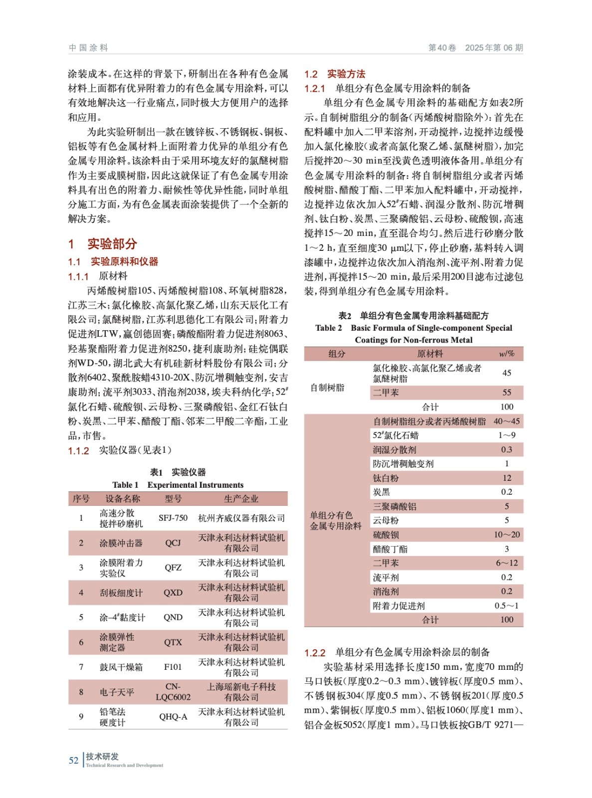 單組分有色金屬專用涂料的研制及性能研究