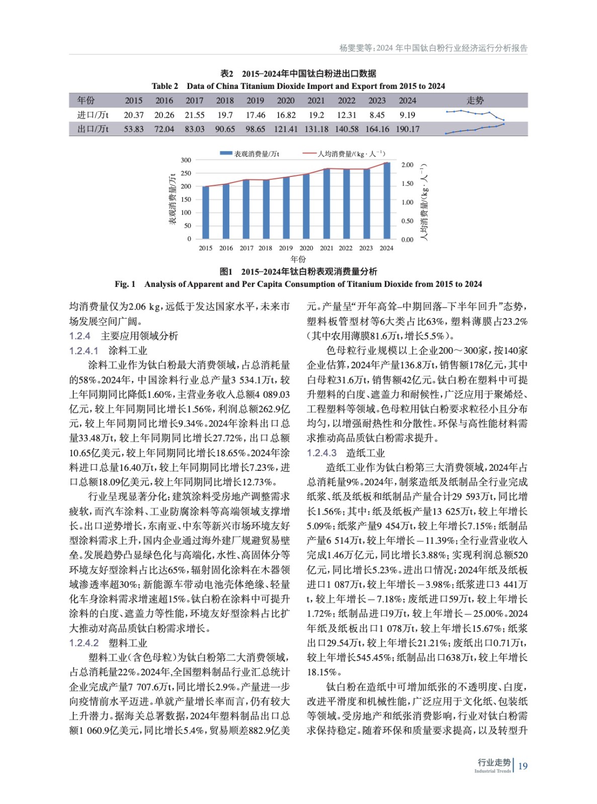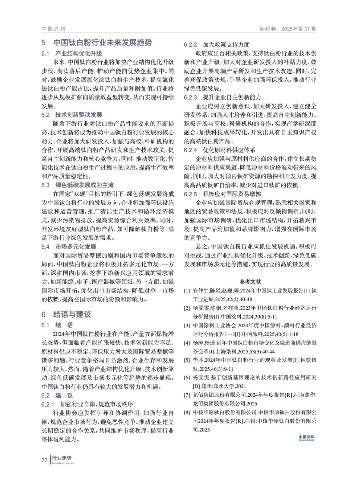 摘要:綜述了2024年中國(guó)鈦白粉行業(yè)經(jīng)濟(jì)運(yùn)行狀況,包括產(chǎn)能擴(kuò)張、產(chǎn)量增長(zhǎng)等情況,指出了當(dāng)前存在的產(chǎn)能持續(xù)擴(kuò)張、市場(chǎng)價(jià)格波動(dòng)、國(guó)際貿(mào)易摩擦及原材料供應(yīng)不穩(wěn)定等問(wèn)題。同時(shí)指出,新興市場(chǎng)需求增長(zhǎng)、技術(shù)創(chuàng)新及政策支持帶來(lái)機(jī)遇。通過(guò)對(duì)鈦白粉產(chǎn)能產(chǎn)量、市場(chǎng)價(jià)格、進(jìn)出口貿(mào)易、上下游產(chǎn)業(yè)鏈及競(jìng)爭(zhēng)格局等多方面數(shù)據(jù)的研究,揭示行業(yè)發(fā)展態(tài)勢(shì),為行業(yè)從業(yè)者及相關(guān)投資者提供決策依據(jù),助力行業(yè)實(shí)現(xiàn)可持續(xù)發(fā)展。