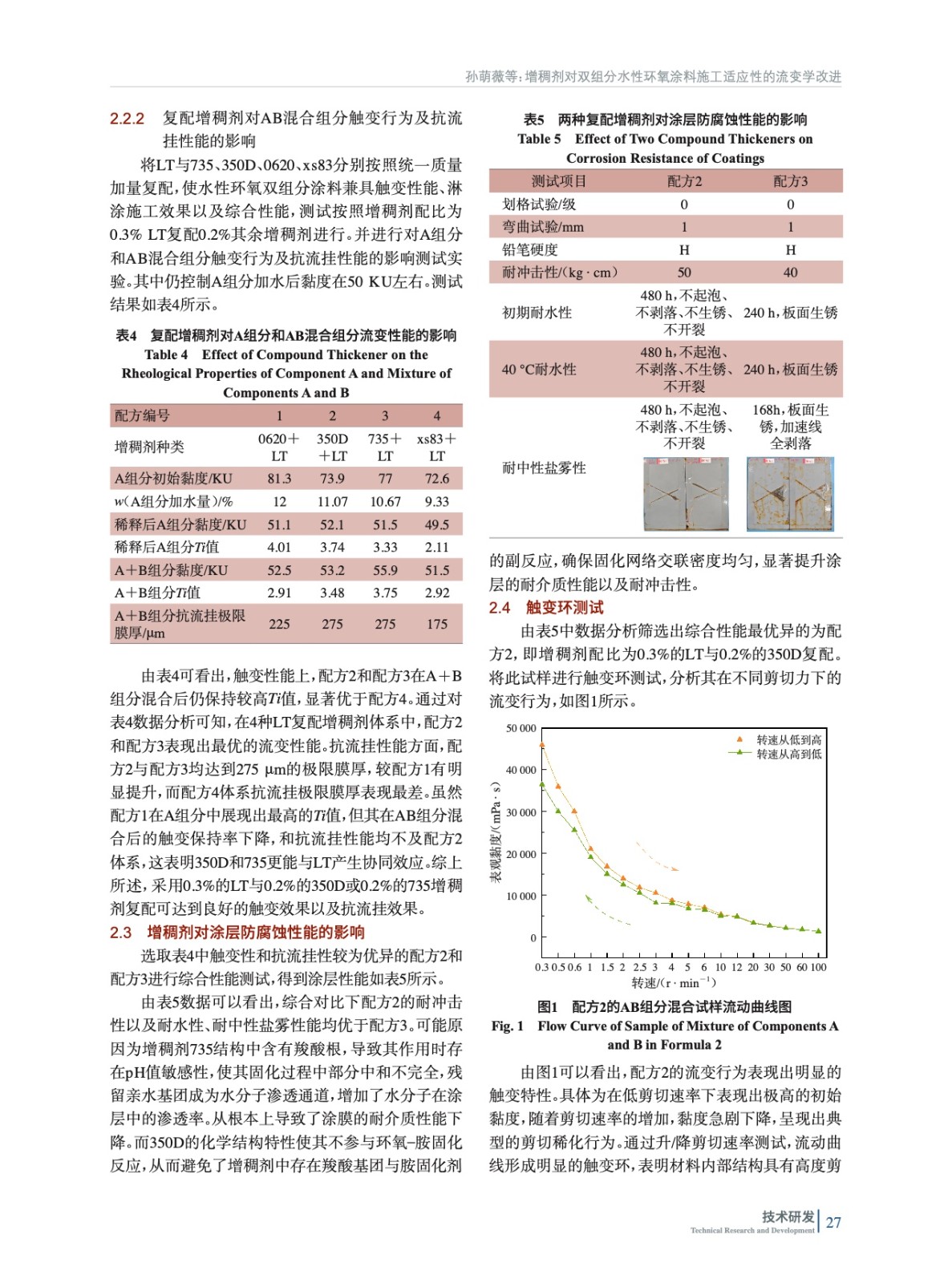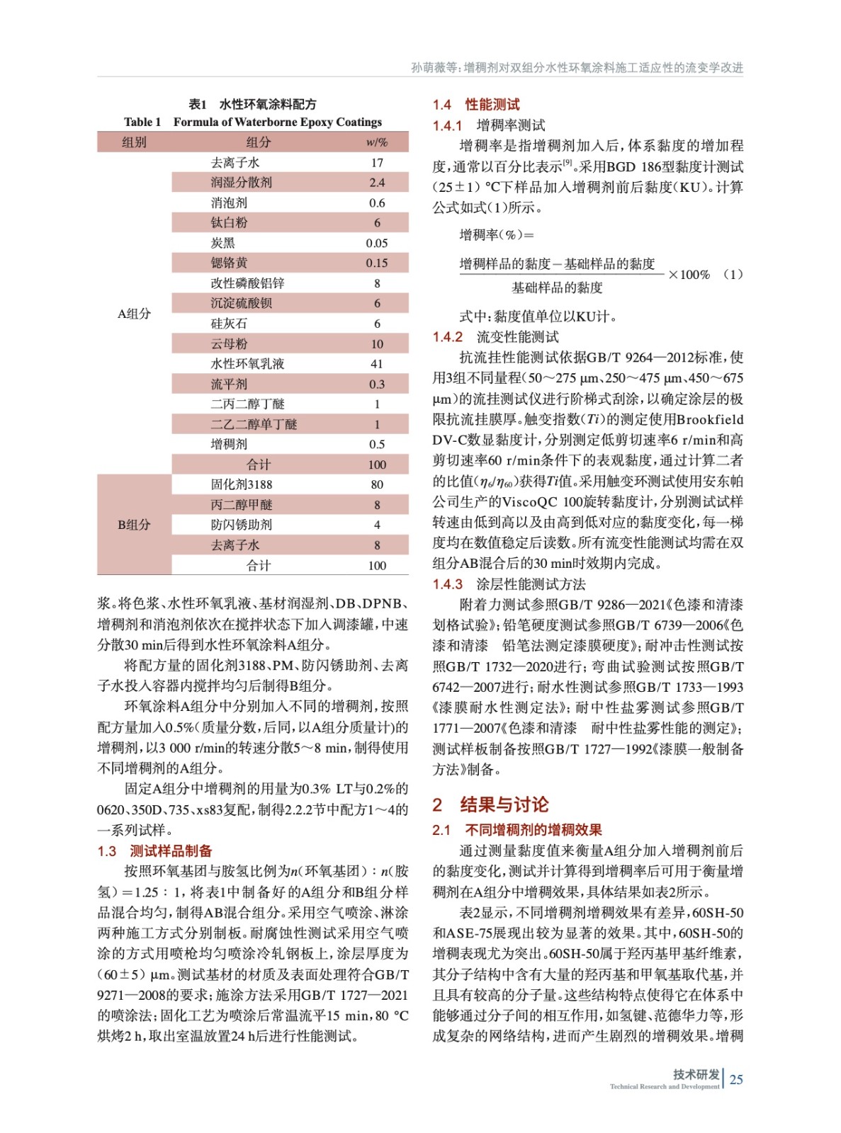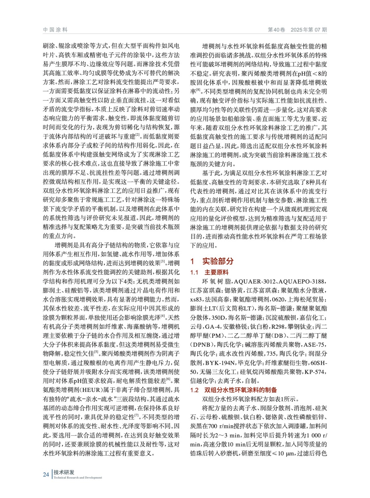 增稠劑對雙組分水性環氧涂料施工適應性的流變學改進