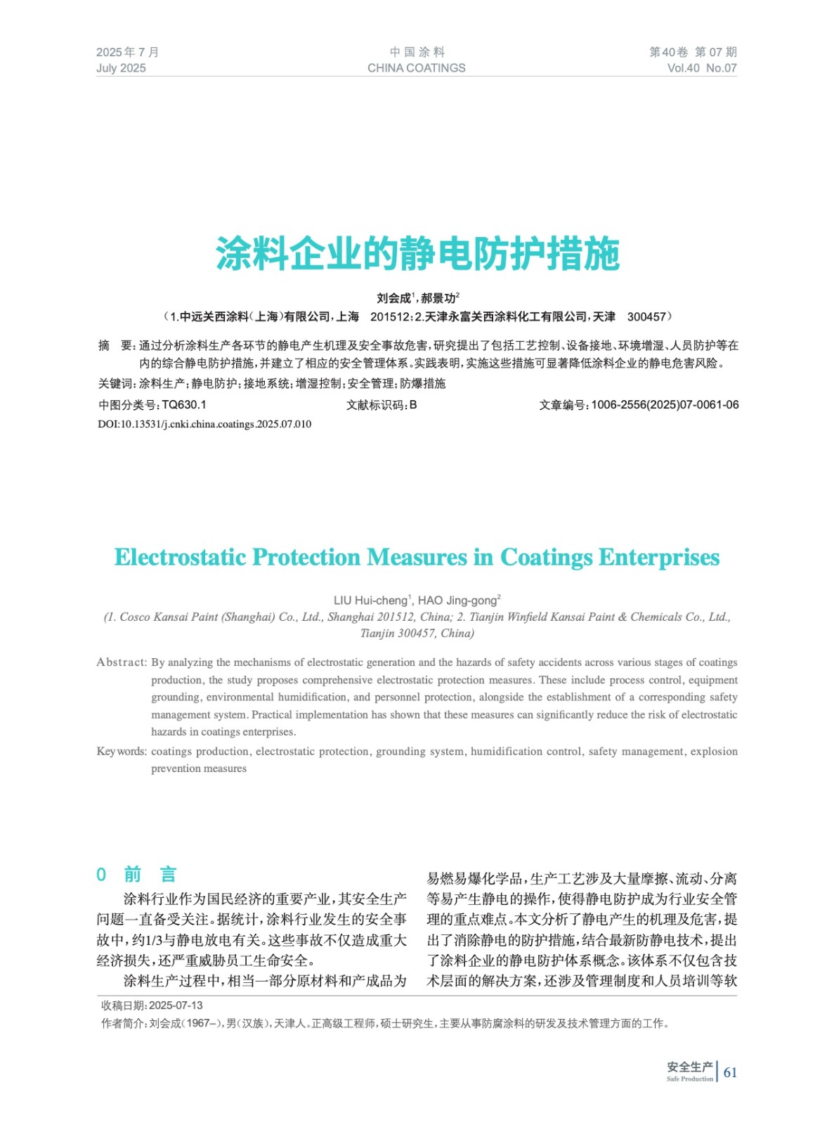 本文系作者@劉會(huì)成,郝景功 授權(quán)中國涂料網(wǎng)發(fā)表,并經(jīng)中國涂料網(wǎng)編輯,未經(jīng)允許不得轉(zhuǎn)載,如需轉(zhuǎn)載請(qǐng)聯(lián)系chinacoatingnet@vip.163.com