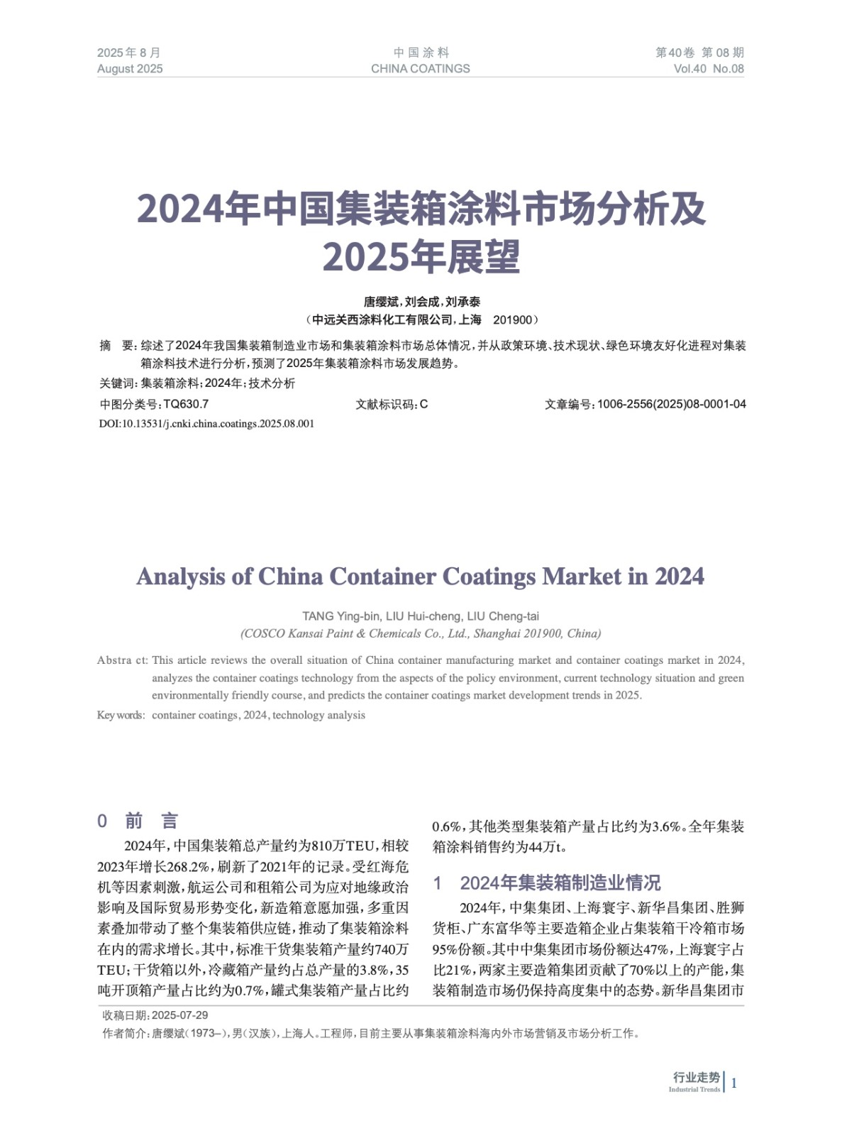 2024年中國(guó)集裝箱涂料市場(chǎng)分析及2025年展望