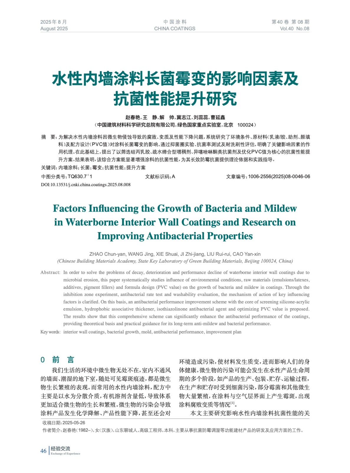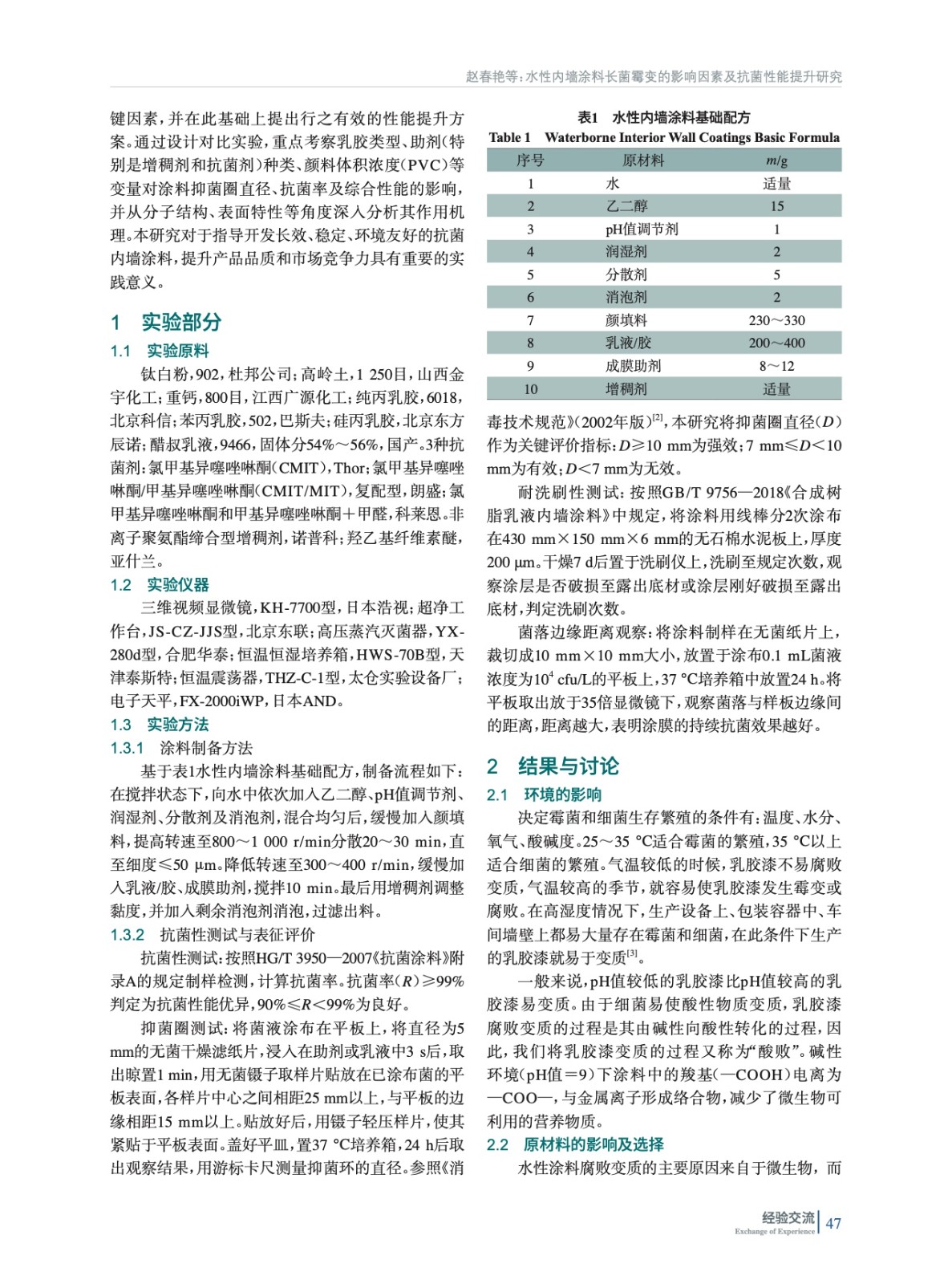 水性內(nèi)墻涂料長菌霉變的影響因素及抗菌性能提升研究
