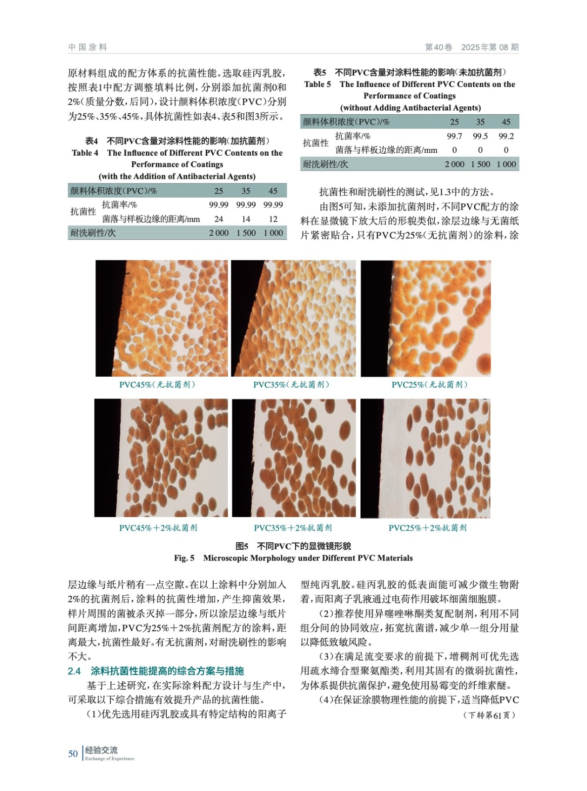 摘要:為解決水性內(nèi)墻涂料因微生物侵蝕導致的腐敗、變質(zhì)及性能下降問題,系統(tǒng)研究了環(huán)境條件、原材料(乳液/膠、助劑、顏填料)及配方設計(PVC值)對涂料長菌霉變的影響。通過抑菌圈實驗、抗菌率測試及耐洗刷性評估,明確了關鍵影響因素的作用機理。在此基礎上,提出了以篩選硅丙乳膠、疏水締合型增稠劑、異噻唑啉酮類抗菌劑及優(yōu)化PVC值為核心的抗菌性能提升方案。結(jié)果表明,該綜合方案能顯著增強涂料的抗菌性能,為其長效防霉抗菌提供理論依據(jù)和實踐指導。