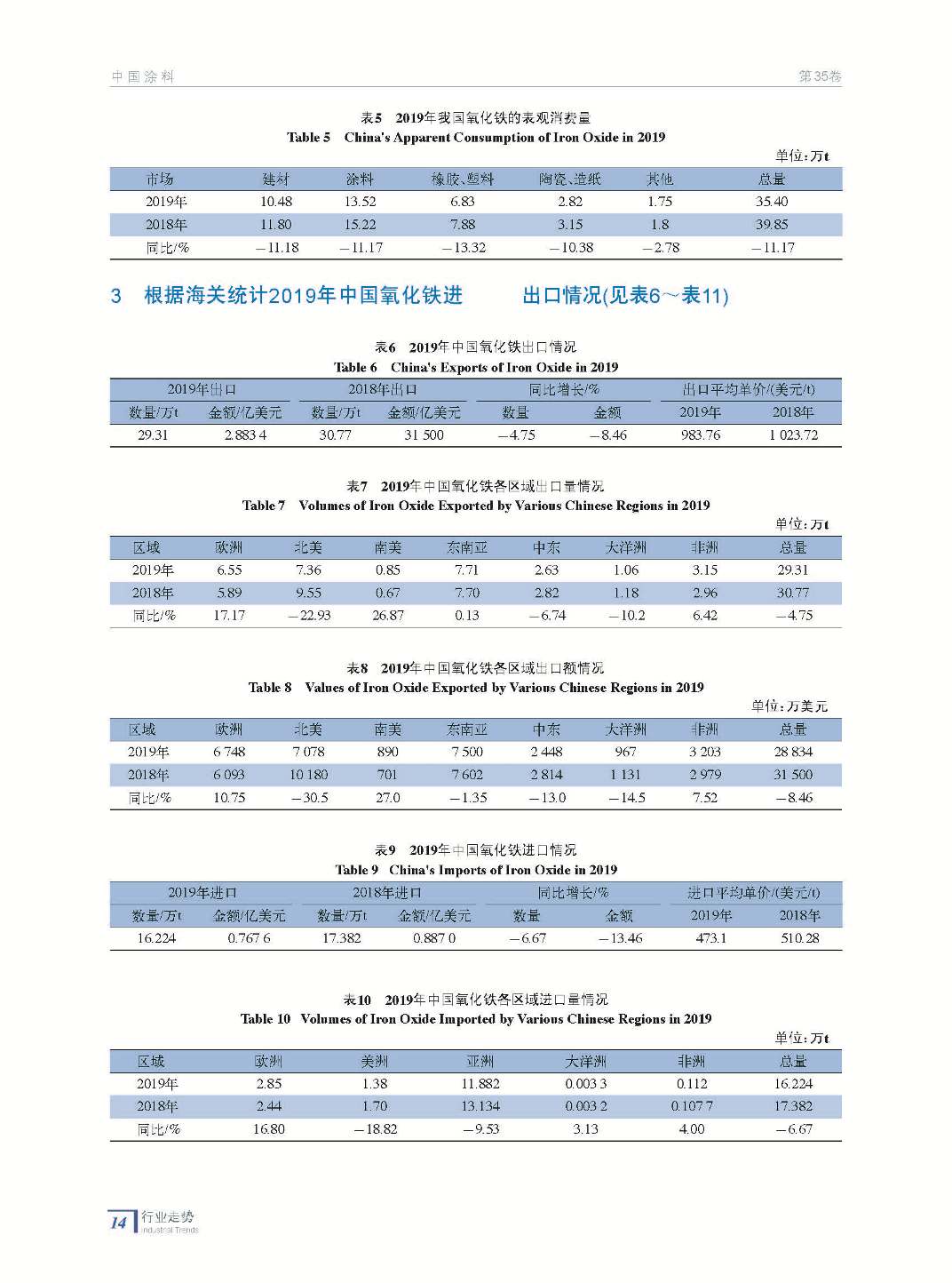 綜述了2019年中國氧化鐵行業經濟指標完成情況,并對行業進出口數據進行了分析,展望了氧化鐵行業2020年發展,陳述了其中可能存在的問題、不足,并指出了行業綠色發展工作方向。