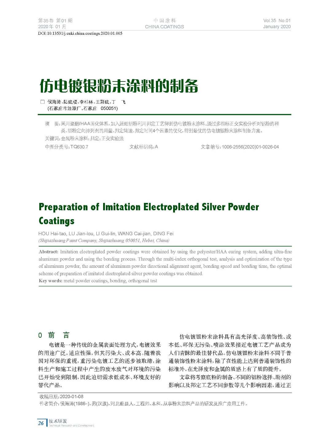 本文系作者@侯海濤,陸建樓,李桂林,王彩建,丁 飛 授權中國涂料網發表,并經中國涂料網編輯,未經允許不得轉載,如需轉載請聯系chinacoatingnet@vip.163.com