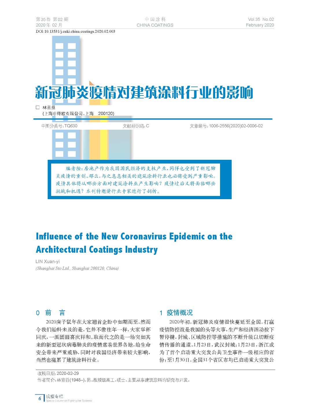 編者按:房地產作為我國國民經濟的支柱產業,同樣也受到了新冠肺炎疫情的重創。那么,與之息息相關的建筑涂料行業也必將受到嚴重影響。疫情具體將從哪些方面對建筑涂料業產生影響?疫情過后又將面臨哪些挑戰和機遇?本刊特邀請行業專家進行了剖析。