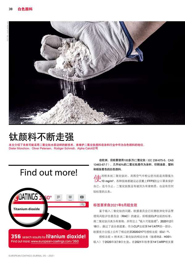 本文介紹了未來可能采用二氧化鈦水漿這樣的新技術(shù),來維護二氧化鈦顏料在涂料行業(yè)中作為白色顏料的地位。