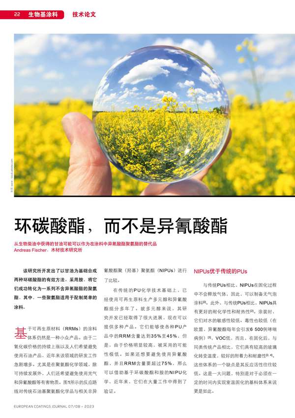 從生物柴油中獲得的甘油可能可以作為在涂料中異氰酸酯聚氨酯的替代品