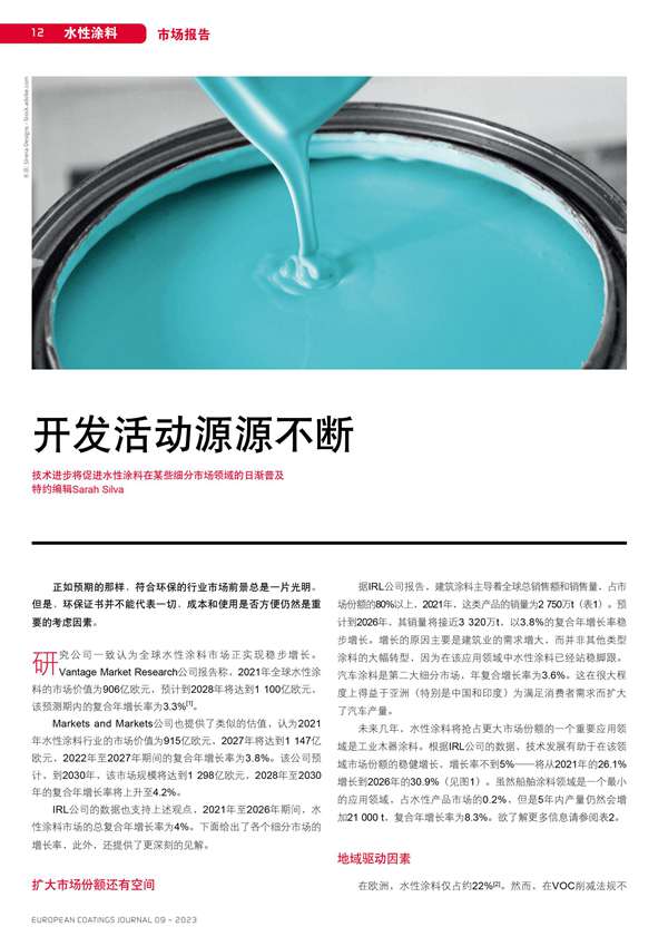 摘要:技術(shù)進(jìn)步將促進(jìn)水性涂料在某些細(xì)分市場(chǎng)領(lǐng)域的日漸普及