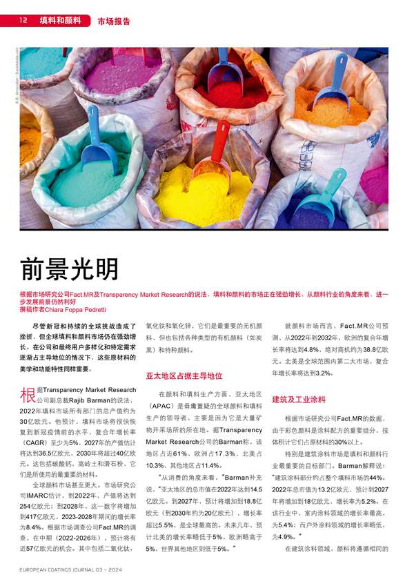 根據市場研究公司Fact.MR及Transparency Market Research的說法,填料和顏料的市場正在強勁增長。從顏料行 業的角度來看,進一步發展前景仍然利好