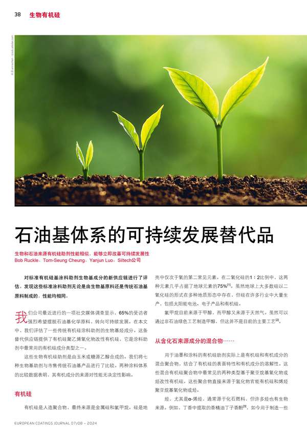 生物和石油來源有機硅助劑性能相似,能夠立即改善可持續發展性