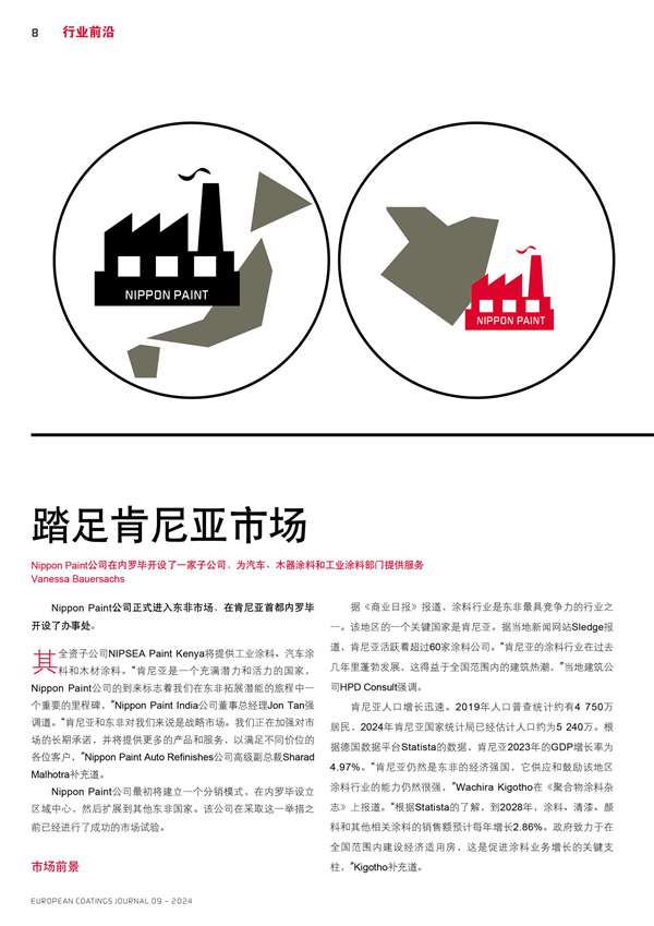 Nippon Paint公司在內羅畢開設了一家子公司,為汽車、木器涂料和工業涂料部門提供服務