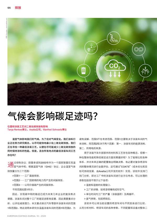 位置和涂裝工藝對二氧化碳排放有影響