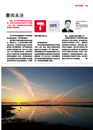 目前, 對于CEPE裝飾涂料業務組來說, 主要關注的事是包括室內空氣質量( IAQ) 方案、 生態標簽以及關于有毒物質控制中心的新規定。