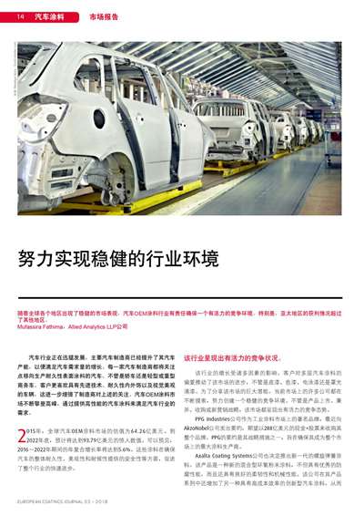 隨著全球各個地區出現了穩健的市場表現,汽車OEM涂料行業有責任確保一個有活力的競爭環境。特別是,亞太地區的獲利情況超過了其他地區。