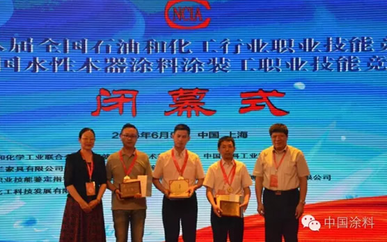 2016年6月5日當天,由中國涂料工業(yè)協(xié)會主辦、中國水性木器涂料產業(yè)聯(lián)盟聯(lián)合主辦的第十屆中國國際水性木器涂料發(fā)展研討會在上海隆重召開。在會上,中華制漆獲“中國水性木器涂料發(fā)展特別貢獻獎”殊榮同時也在全國水性木器涂裝工職業(yè)技能競賽中獲得團隊優(yōu)勝獎項。