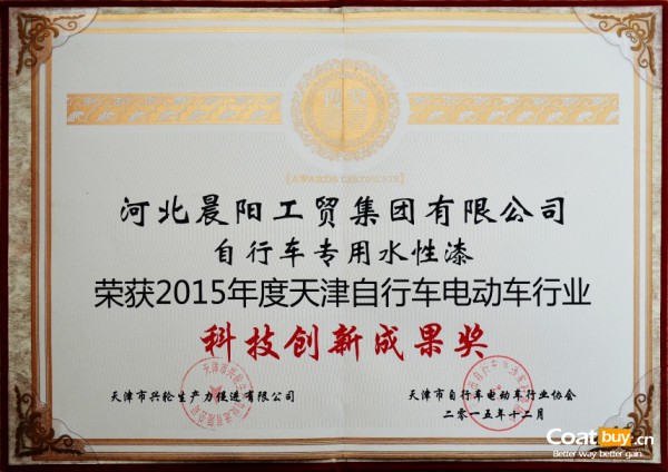 近日,天津市自行車電動(dòng)車行業(yè)協(xié)(商)會(huì)五屆四次會(huì)員大會(huì)暨2015年行業(yè)科技工作會(huì)議圓滿落幕。晨陽(yáng)水漆自行車專用水性漆榮獲2015年度天津自行車電動(dòng)車行業(yè)“科技創(chuàng)新成果獎(jiǎng)”,技術(shù)總監(jiān)肖銘現(xiàn)場(chǎng)作《自行車“漆變”的強(qiáng)勢(shì)發(fā)軔》主題宣講。