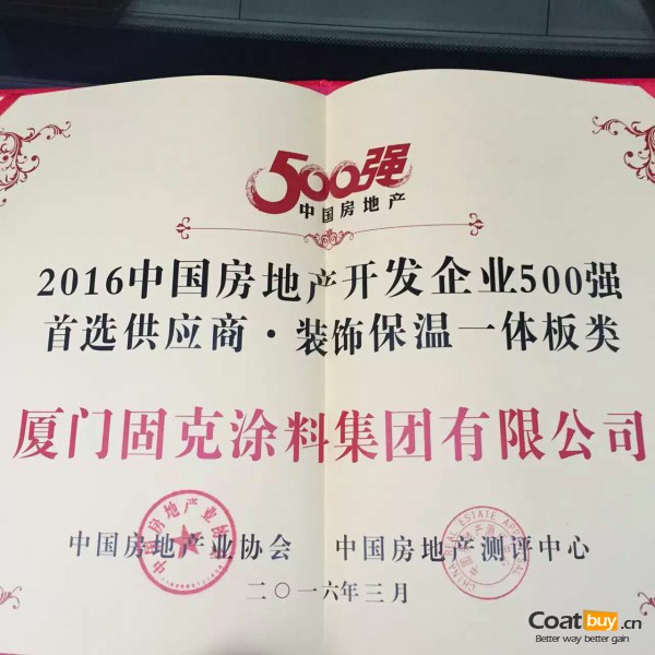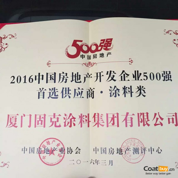“固克漆”再度蟬聯500強開發商首選品牌